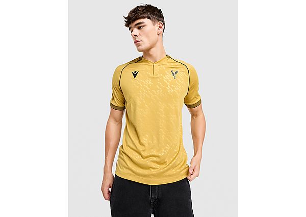 Celebrate that famous victory at Wembley. This men's Crystal Palace FC 2025/26 Third Shirt from Macron lands in winning gold. It's cut from light and breathable fabric for cool comfort. Modelled off the pro shirt, it features short sleeves, a buttoned V-neckline and elasticated cuffs to hold the shape. Signed off with the club crest and Macron. Machine washable | Our model is 6'2" with a 37" chest and wears a size M.
