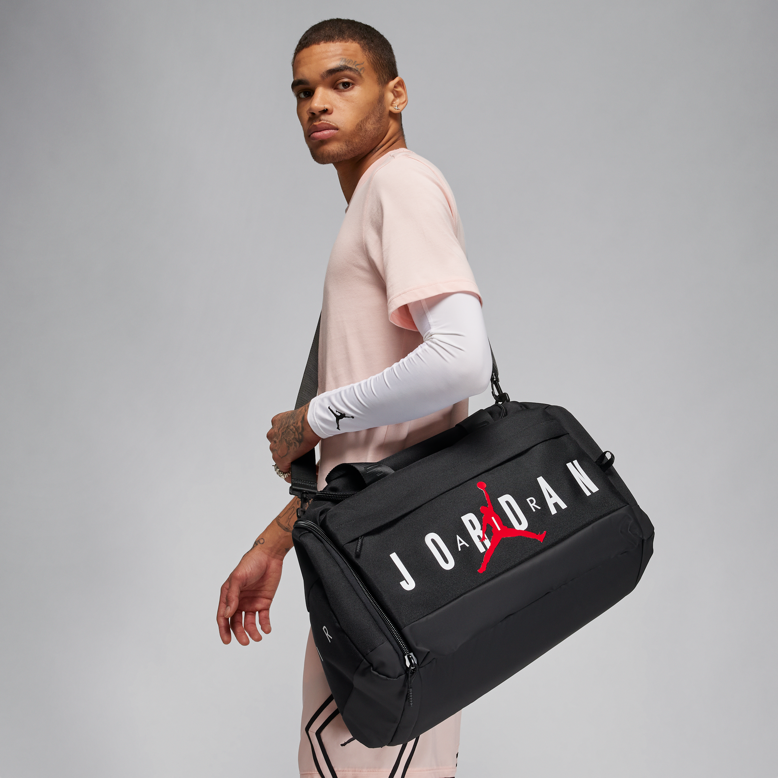 Ya sea que debas transportar tu equipo al partido o que necesites una bolsa amplia donde quepa lo necesario para pasar la noche fuera, esta maleta duffel cubre tus necesidades. El compartimento principal tiene un cierre bidireccional y un bolsillo abierto interior para ayudarte a mantener los artículos pequeños en su lugar; además, el compartimento para los tenis en el lateral ayuda a mantener las cosas limpias y organizadas. ["Beneficios: El bolsillo grande con cierre en la parte delantera ofrece un espacio adicional para asegurar los artículos a los que quieras acceder de un modo rápido y fácil."] [] ["Datos del producto: 26 x 55 x 33 cm (alto x largo x profundidad). Largo de la correa: 130 cm (más larga), 81 cm (más corta).. 100% poliéster. Limpiar solo las manchas. Producto importado"] Style: HF7296; Color: Negro; Size: TALLA ÚNICA; Age Group: Adult | Jordan