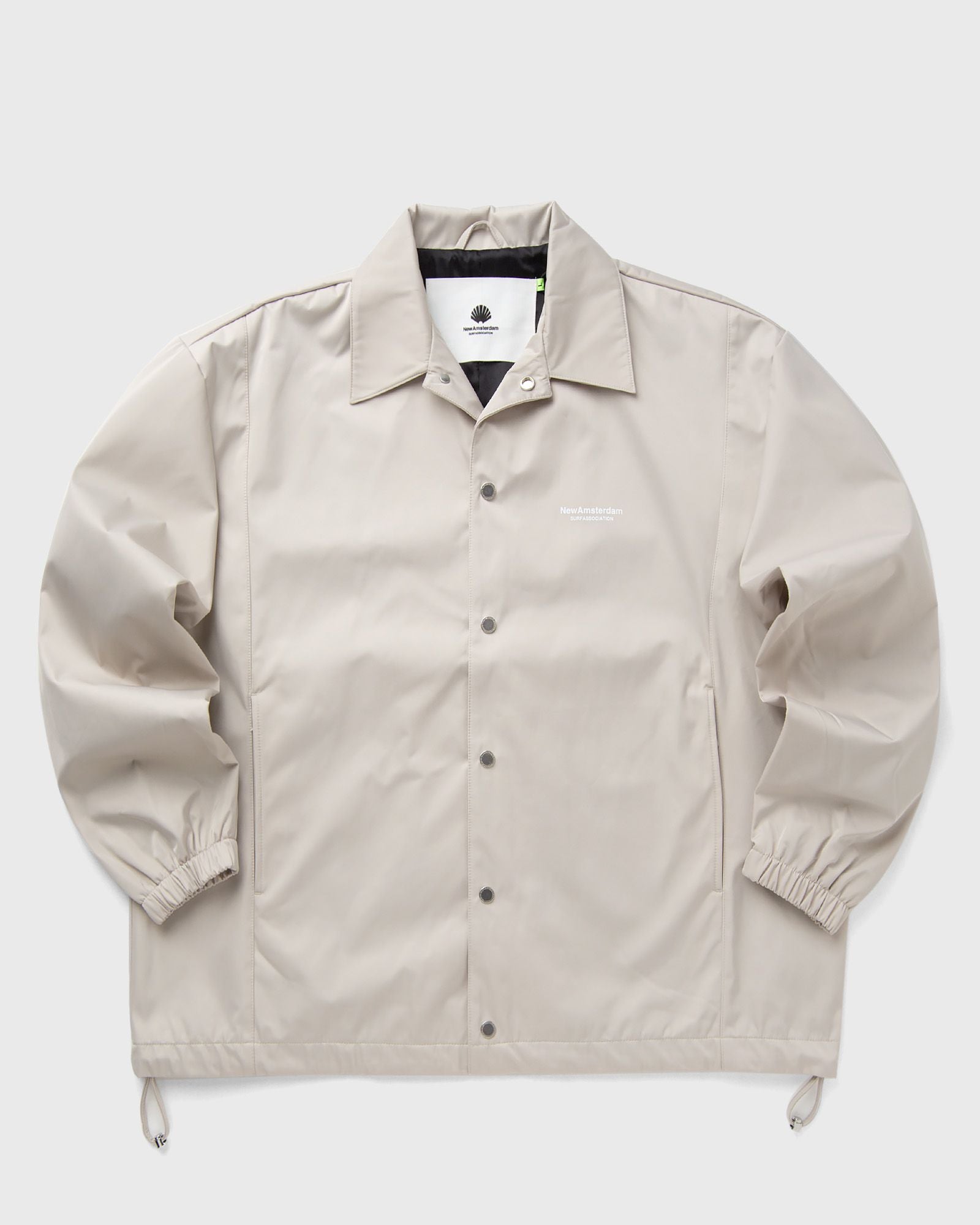 The New Amsterdam COACH JACKET is made from heavy nylon fabric with a branded lining and screen print on the chest. The jacket is equipped with metal snap buttons, side seam zipper pockets, elastic cuffs and an adjustable drawstring at the bottom hem. - Relaxed fit - Length to below the hip - Metal snap button closure - Side seam pockets - New Amsterdam logo screen print