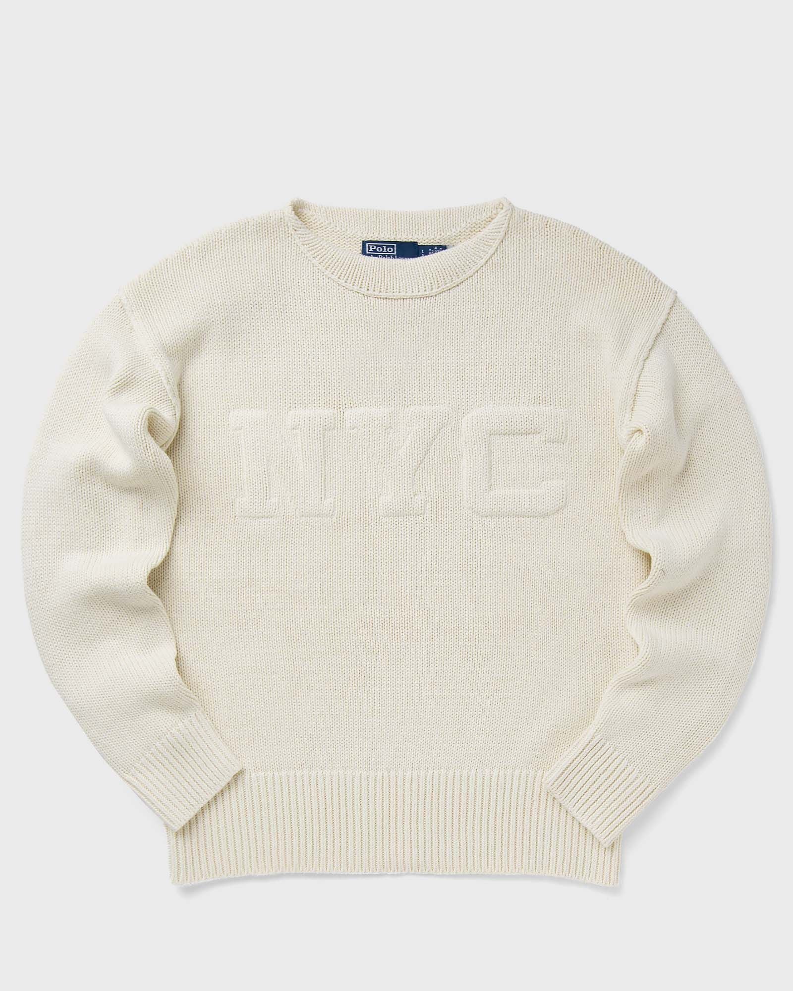 This chunky-knit jumper pays homage to Polo Ralph Lauren�s founder�s hometown with a letterman-style NYC graphic. - Boatneck - Long sleeves with rib-knit cuffs - NYC on the center front - Rib-knit hem