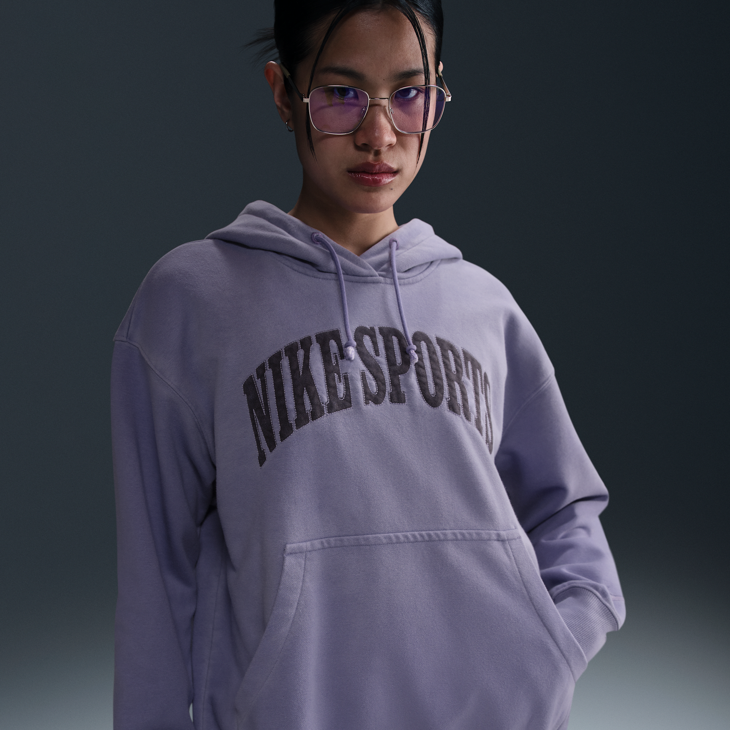 Con French Terry sin cepillar y un lavado vintage, esta sudadera oversize ofrece una sensación transpirable y cómoda. [] [] ["Datos del producto: Cuerpo/forro del gorro: 88% algodón, 12% poliéster Tela de canalé: 97% algodón, 3% spandex.. Ribetes extra anchos. Cordones de ajuste alargados. Gráficos impresos con contorno cosido. Logotipo Swoosh bordado en la muñeca izquierda. Abertura del cordón de ajuste bordada. Lavar a máquina. Producto importado"] Style: HJ1235; Color: Amatista empolvado; Size: M; Age Group: Adult | Nike Sportswear Phoenix Fleece