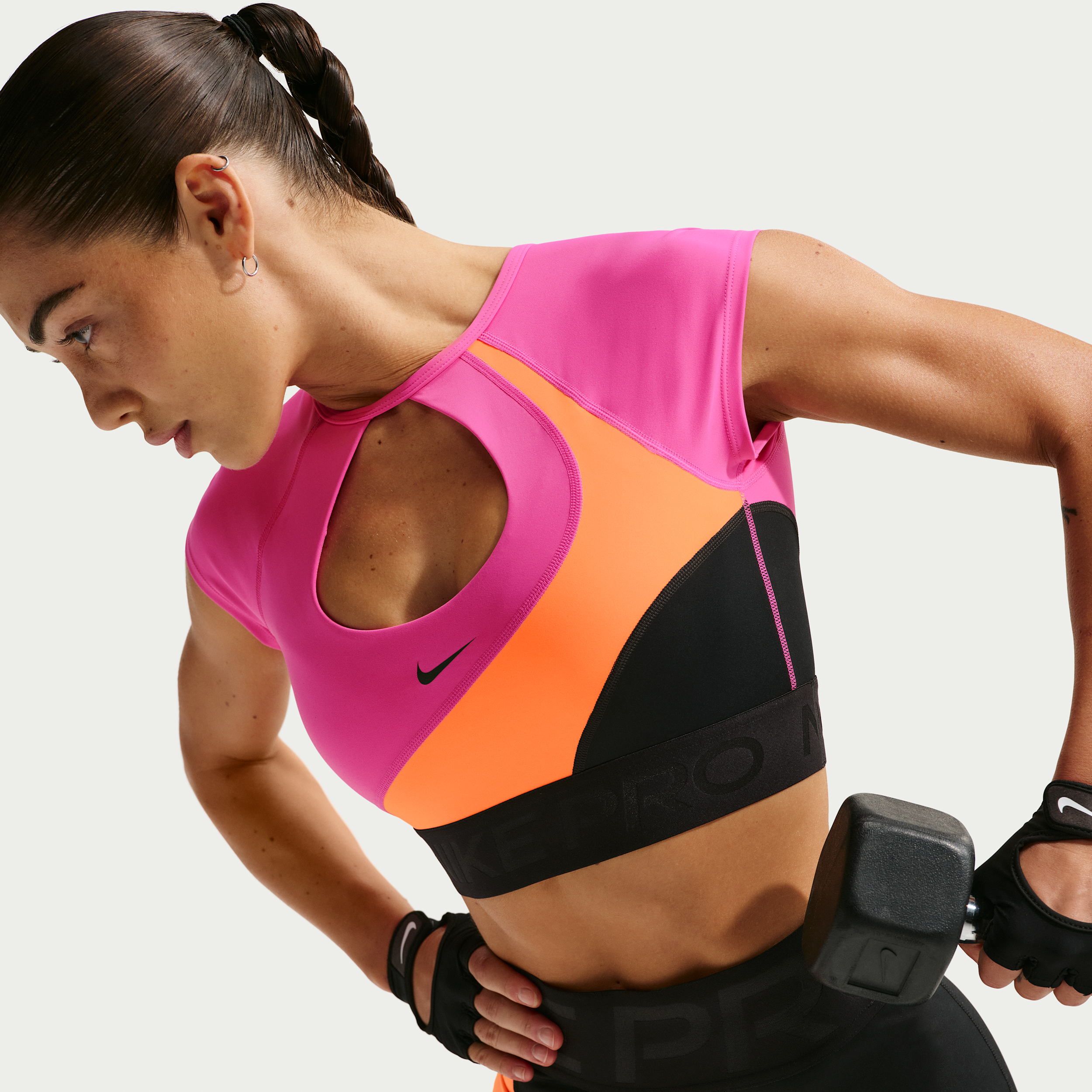 La Sujetador deportivo acolchado de manga corta con sujeción media Nike Pro Sculpt para mujer - Naranja ofrece frescura y comodidad para entrenamientos de alto rendimiento. Su tejido ligero y transpirable ayuda a mantenerte seco mientras te mueves con libertad.