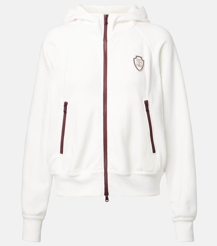 The Brunello Cucinelli Cotton-blend pique hoodie is expertly crafted using material: 93% cotton, 7% polyamide. care instructions: dry clean. made in italy. designer color name: off white+amaranto. item color: white, burgundy. material ii: 90% cotton, 10% elastane. sleeves: raglan. closure: zipped front. hood. cotton. — ensuring durability and an unmistakable touch of elegance. Its meticulous construction speaks to Brunello Cucinelli’s dedication to quality and distinctive design.