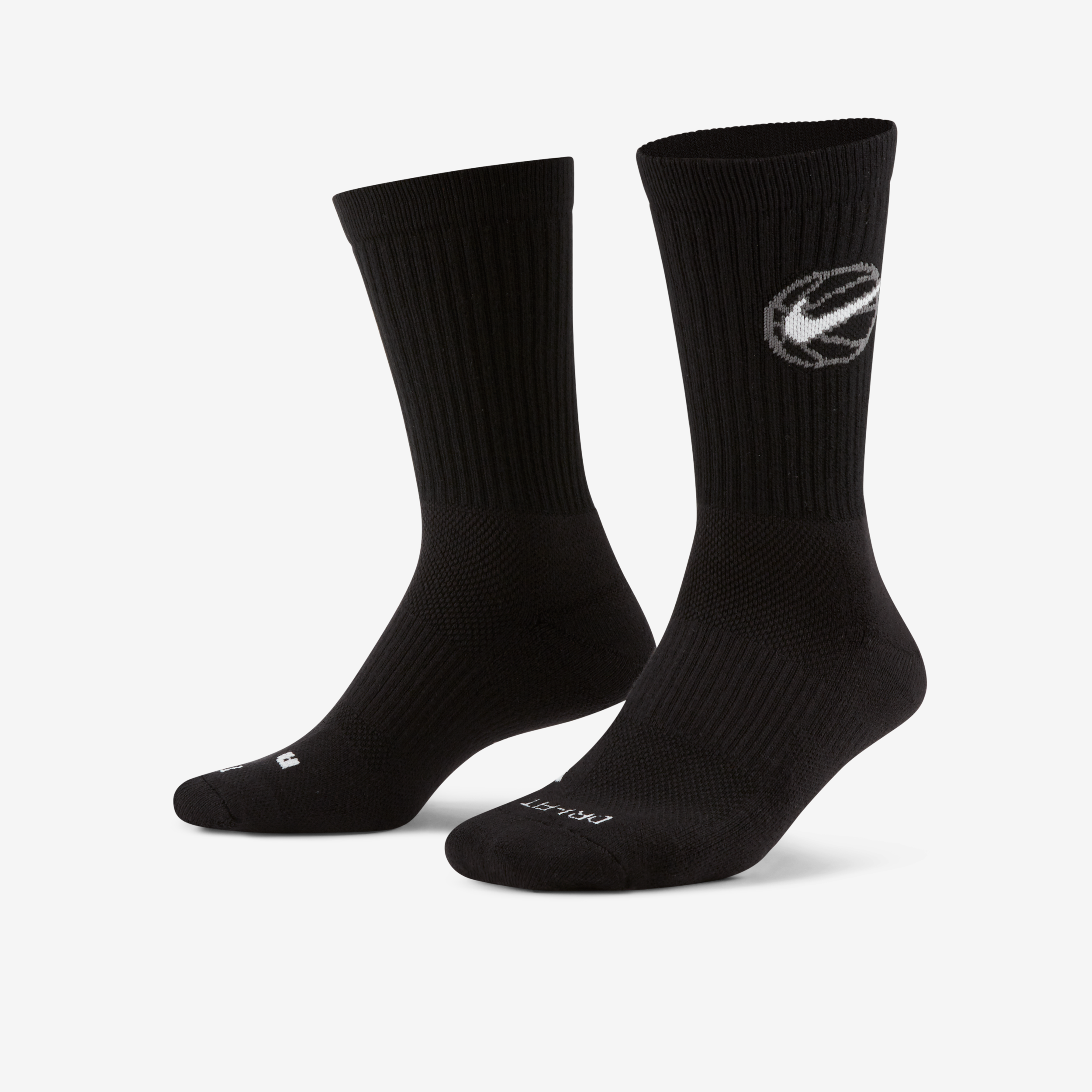 PARA EL JUGADOR IMPARABLE. Da todo de ti en el partido con los calcetines acolchados Nike Everyday. La planta del pie acolchada proporciona comodidad en la cancha, mientras que la banda del arco en tela de canalé envuelve el mediopié para brindar una sensación de soporte. ["Beneficios: La tecnología Dri-FIT mantiene los pies secos y cómodos. La amortiguación en la planta del pie ofrece comodidad. La banda del arco de tela de canalé ofrece una sensación de soporte. El estilo de 3/4 cubre el tobillo y la parte baja de la pantorrilla."] [] ["Datos del producto: 79% poliéster, 17% algodón, 3% poliuretano, 1% nylon. Lavar a máquina. Producto importado"] Style: DA2123; Color: Negro/Blanco; Size: S; Age Group: Adult | Nike Everyday Crew