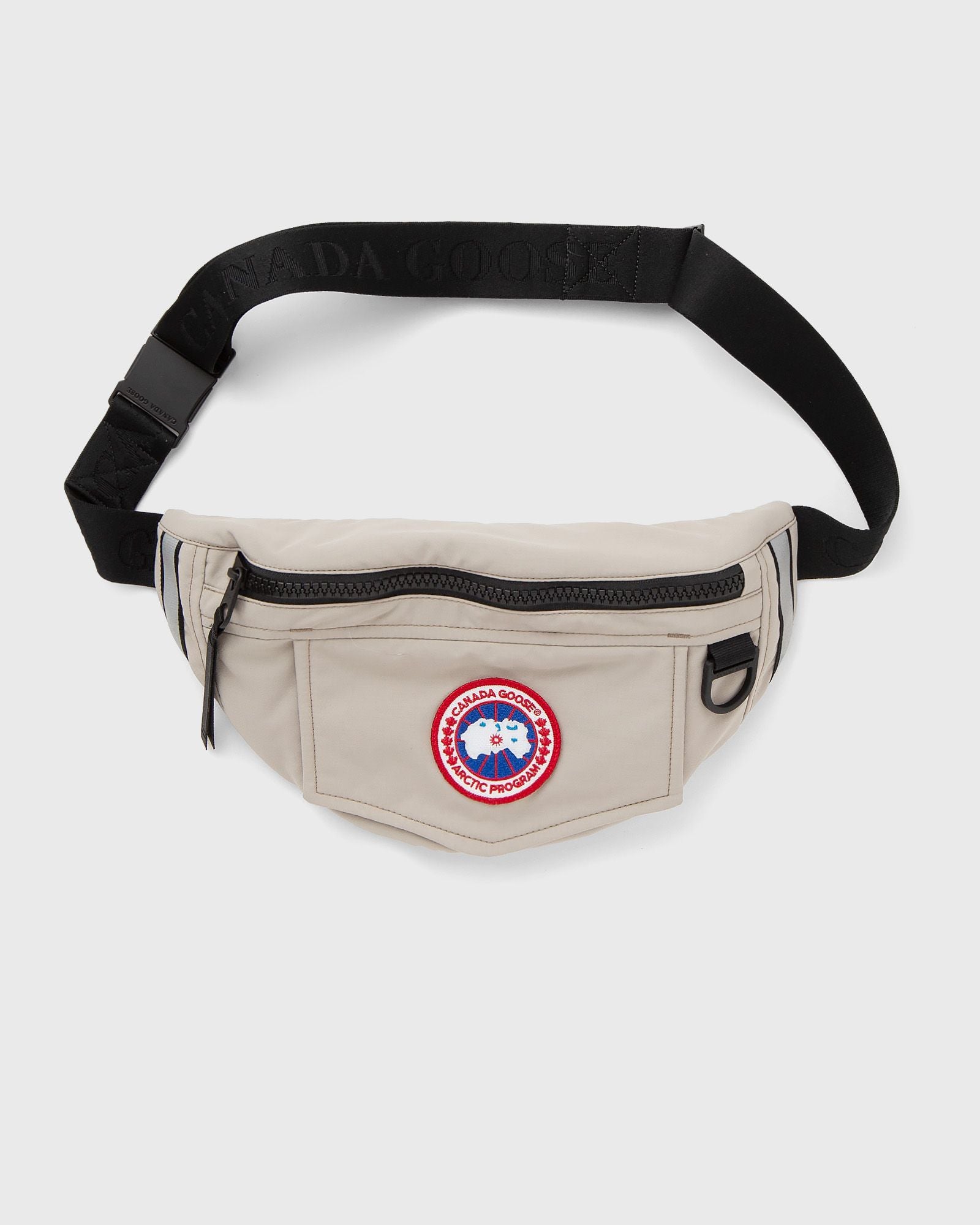 The Waist Pack from Canada Goose can store all your essentials and keep your hands free. With the long adjustable strap, it can be worn as a hip or shoulder bag. - Adjustable strap for all-day comfort - Reflective details on exterior add visibility in low light - D-ring attachments for attaching necessities - 1 exterior pocket: 1 drop-in pocket with hidden snap closures - 2 interior pockets: 1 large pocket with zipper closure front, 1 pocket at back with zipper closure