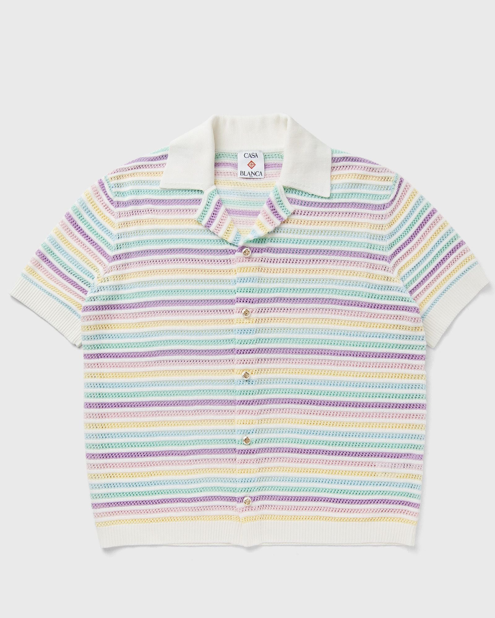 The FLOWER CROCHET POLO combines sporty elegance with fine craftsmanship. Made from breathable cotton crochet, it has a loose and comfortable relaxed fit. The characteristic mother-of-pearl buttons with monogram logo give the shirt that typical Casablanca tennis vibe. - Relaxed fit - Characteristic mother-of-pearl buttons with monogram logo
