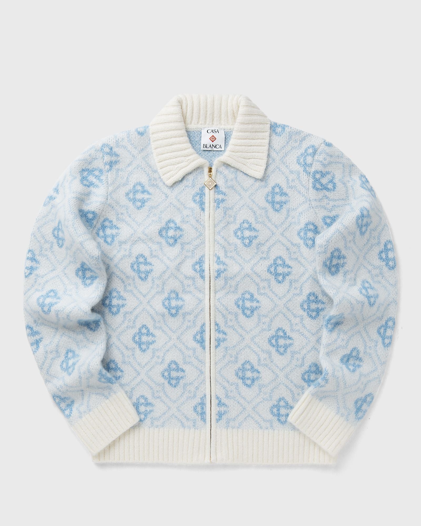 The Casablanca mohair monogram zip jumper features a finely woven intarsia monogram in light blue and off-white, combined with a clean front zipper with a diamond logo zipper tab. The slim fit and ribbed collar, cuffs and hem ensure a perfect fit and comfort. - Zipper with diamond logo zipper tab - Ribbed collar, cuffs and hem - Slim fit