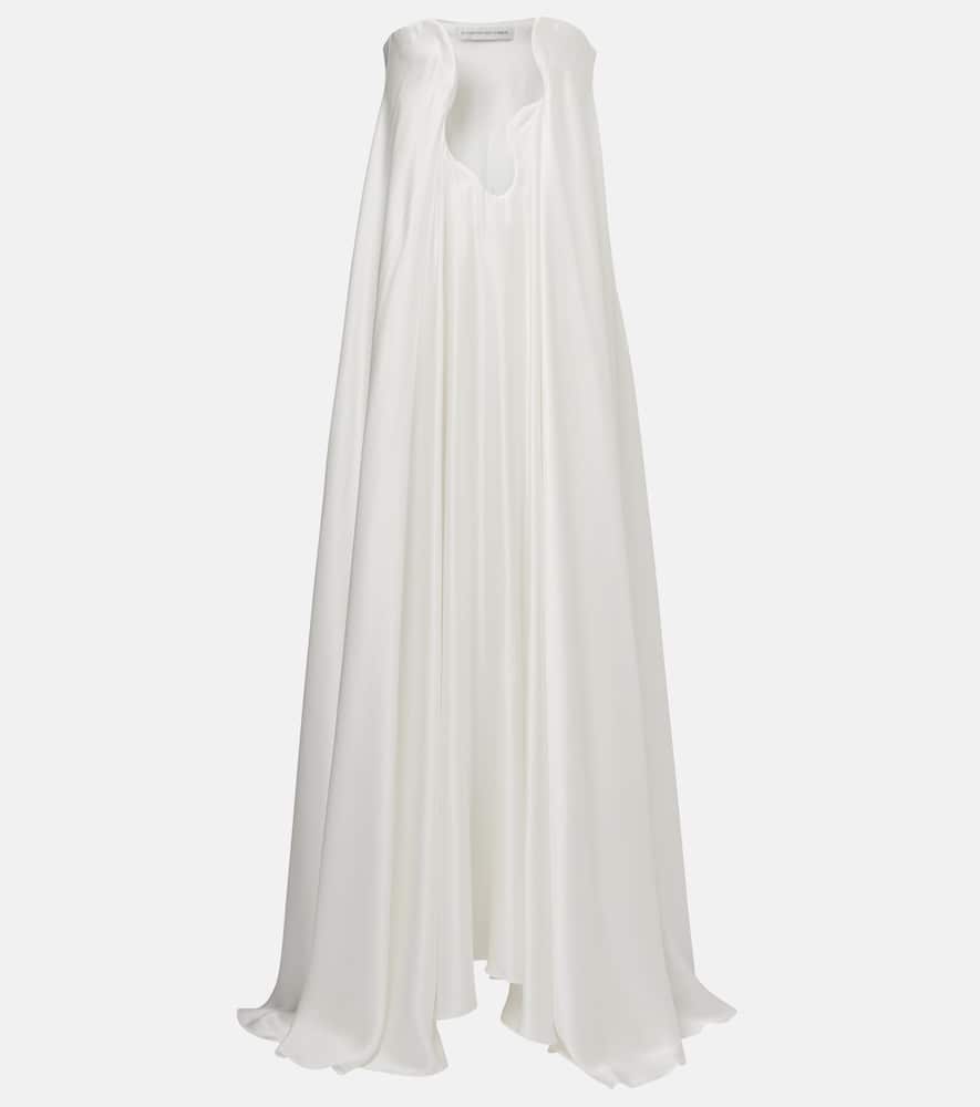 The Christopher Esber Salacia silk maxi dress is expertly crafted using material: 100% silk. care instructions: dry clean. made in china. designer color name: white. item color: white. material ii: 72% polyamide, 28% elastane. material iii: 100% copper. closure: invisible zipper. — ensuring durability and an unmistakable touch of elegance. Its meticulous construction speaks to Christopher Esber’s dedication to quality and distinctive design.