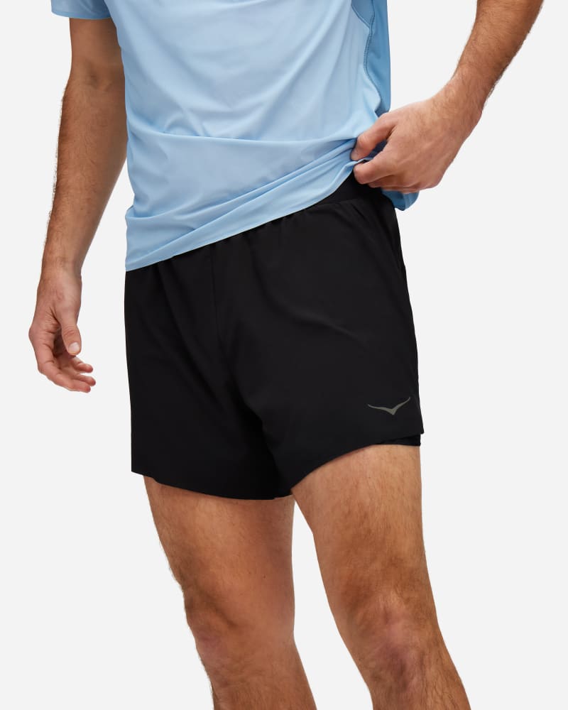 The HOKA Glide'' Shorts-- Black combine premium materials with a refined, street-ready design, delivering a modern everyday look inspired by HOKA’s performance heritage.