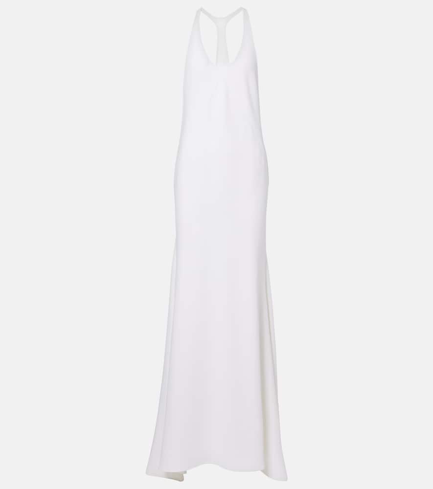 The Jacquemus Knitted gown is expertly crafted using material: 65% viscose, 32% acetate, 3% elastane. care instructions: dry clean. made in bulgaria. designer color name: white. item color: white. lining: 100% polyester. — ensuring durability and an unmistakable touch of elegance. Its meticulous construction speaks to Jacquemus’s dedication to quality and distinctive design.