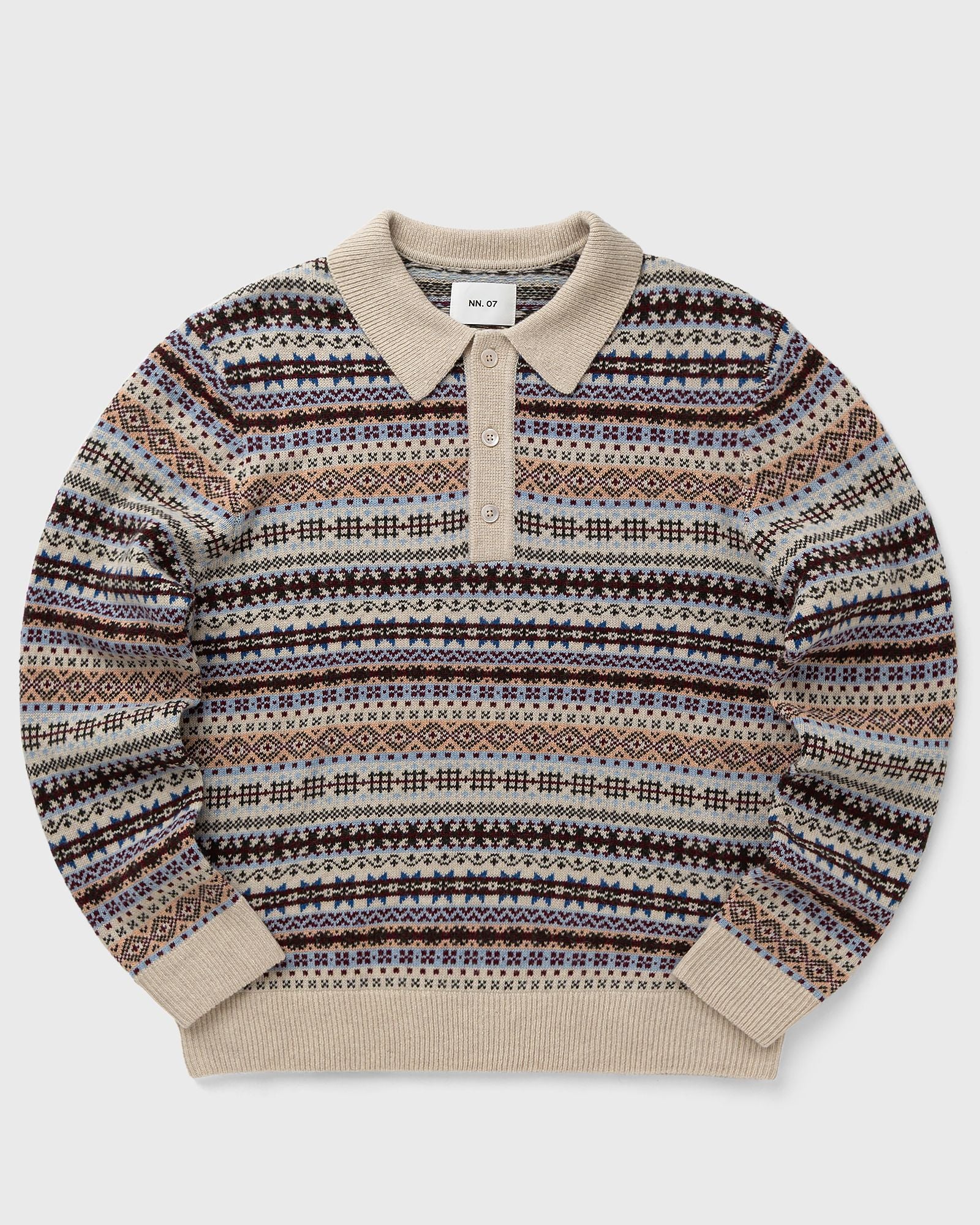 The Robbie Polo by NN.07 is a relaxed, multicolored polo sweater made from a soft wool blend. The design is rounded off by elegant mother-of-pearl buttons, which lend the look a subtle, sophisticated touch. A casual statement piece with style and character. - Relaxed fit - Soft feel - Multicolor - Mother-of-pearl buttons