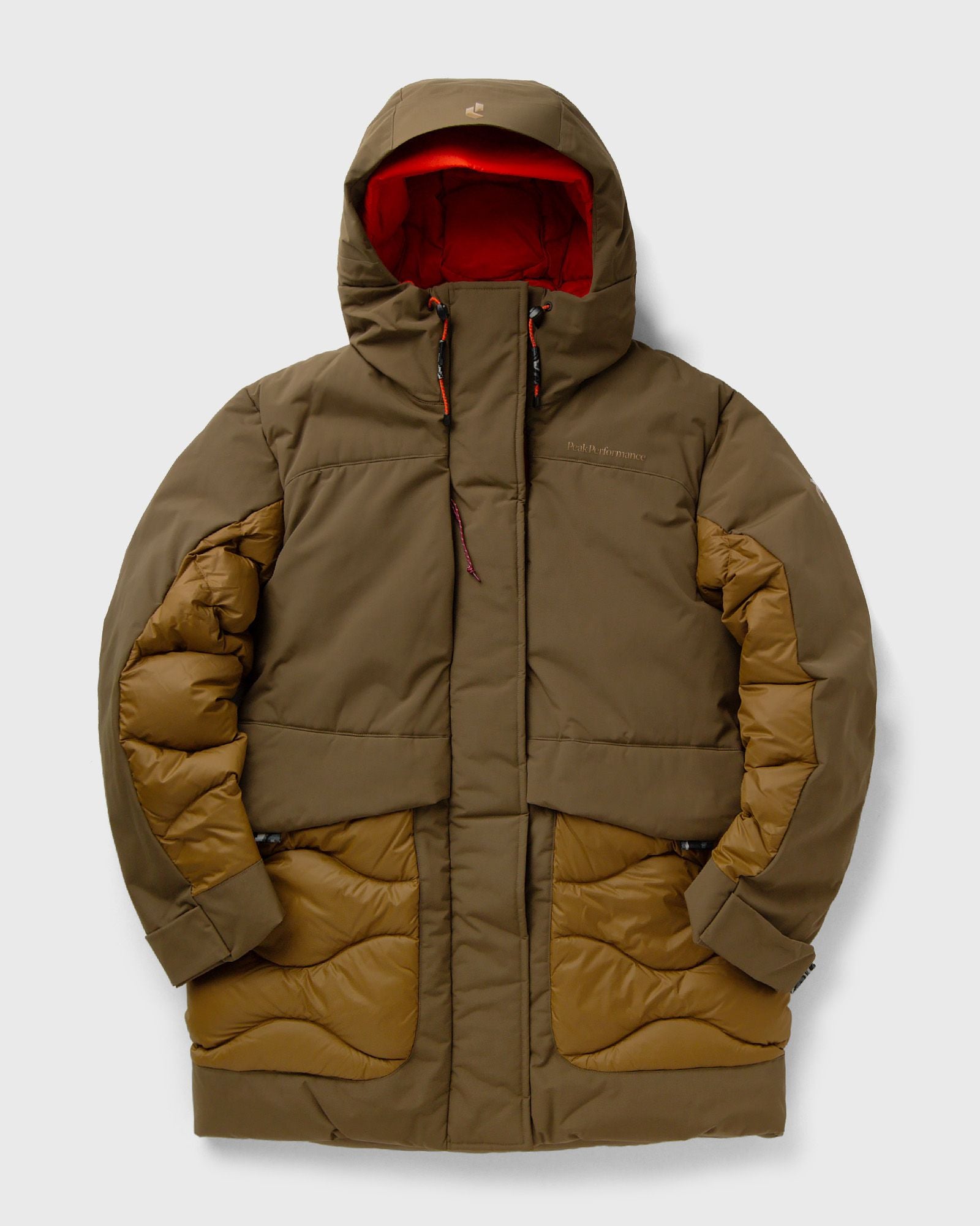 The Infusion Helium Down Parka by Peak Performance combines ultra-light down warmth with urban style. With recycled ripstop outer fabric, RDS-certified 90/10 down filling, and clever details such as an adjustable waist and hood, it is ideal for windy, cold days. Its compressible design makes it the perfect companion in the city or on short trips. - Down filling, 700 fill power, 90/10 down/feathers - Modular 2-in-1 storm hood - Full-length 2-way YKK Vislon zipper at the front - Double-folded storm flap with Velcro fastener - Synthetic layer padding - Dual adjustable hood - Adjustable hem with drawstring - Elastic cuffs - Sleeve ends with Velcro width adjustment - Drawstring at the waist - Zippered chest pocket and concealed chest pocket with snap fastener - Zippered pockets at the front and small pockets on the left sleeve - Flap pockets at the front with concealed zippers - Chin guard with fleece lining