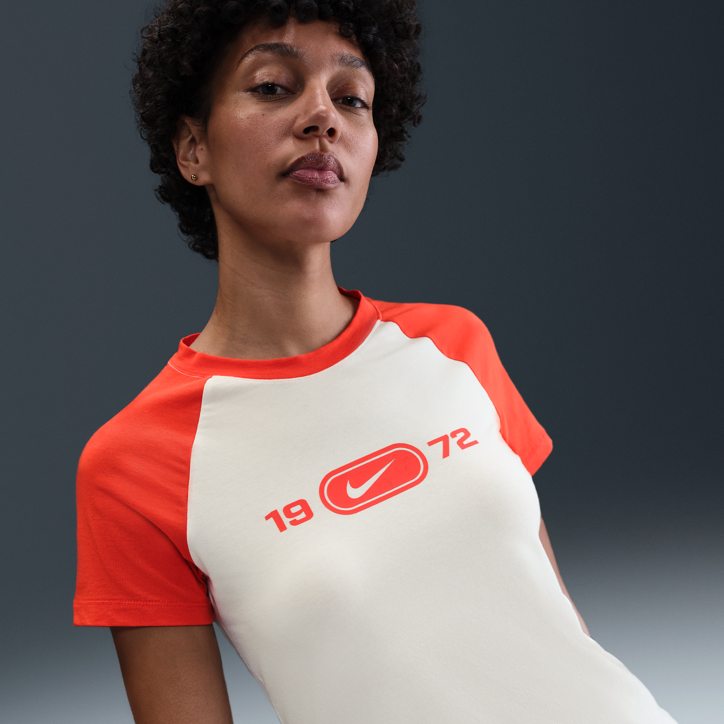 Todo comenzó en 1972. Confeccionada con un tejido de punto suave y elástico, esta playera tipo raglán es lo suficientemente cómoda para usarla durante todo el día. [] [] ["Datos del producto: 48% modal, 46% algodón, 6% spandex. Gráficos estampados. Lavar a máquina. Producto importado"] Style: HV4992; Color: Blanco/Azul fuerza; Size: XL; Age Group: Adult | Nike Sportswear Chill Knit