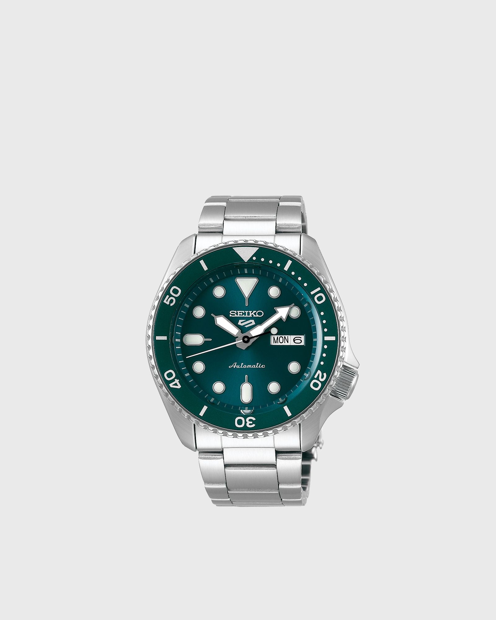 The new Seiko 5 collection celebrates originality and diversity of styles. This watch comes in a sporty design with a green dial and colorful accents, which can also be found on the unidirectional rotating bezel of this timepiece. It is powered by a Seiko automatic caliber, is water-resistant to 10 bar and has a transparent case back. - Case material: Stainless steel - Material glass: Hardlex (hardened mineral glass) - Bracelet: Stainless steel - Water-resistant to a pressure of 10 bar