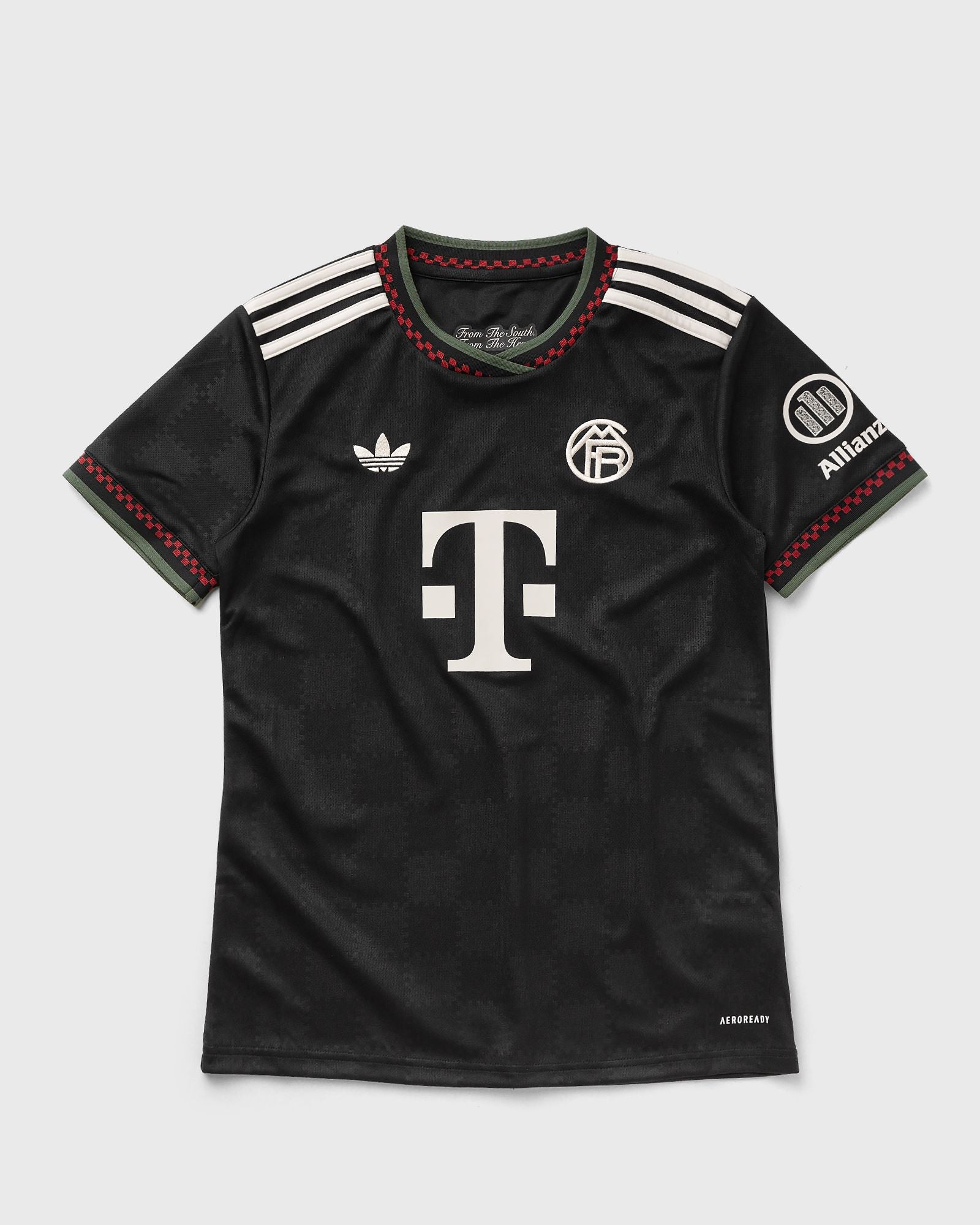 The 3rd kit by FC Bayern Munich for the 2025/26 season is an official collaboration between FC Bayern, adidas, and BSTN. The jointly created design comes clad in a sleek black base with hues of red, green, and white. Bound well beyond their southern roots, FC Bayern, adidas, and BSTN share a passion for sports, culture, and strong ties to their local communities � captured in the catchphrase �From The South, From The Heart�, printed on the jersey�s neck. Fittingly, the jersey�s distinct retro aesthetic and details pay homage to FC Bayern�s heritage and the connection between the club and its fan community. - Regular fit - Crewneck - Double-knit - Aeroready technology - All-over embossed graphic - FC Bayern embroidered crest - Embroidered Trefoil logo - �From The South, From The Heart� print on the inside of the neck