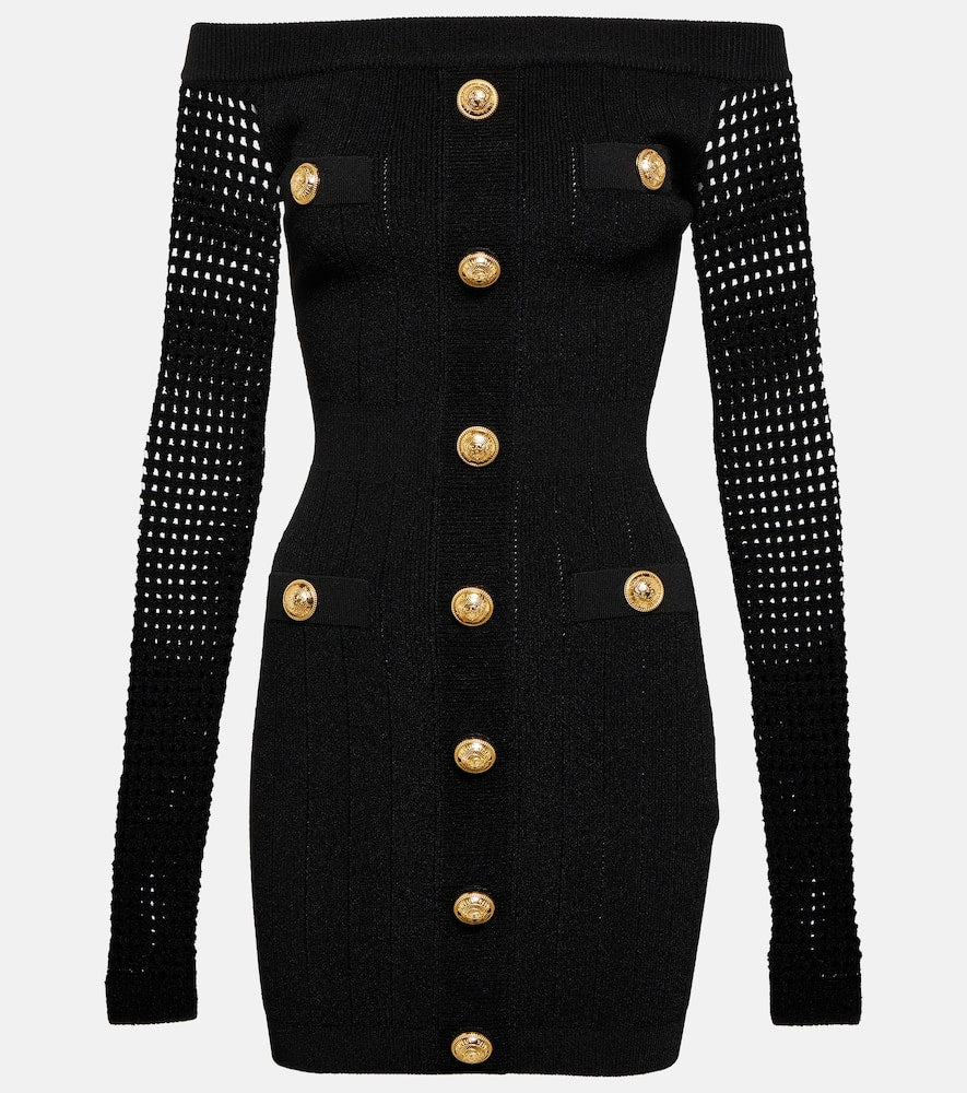 Elevate your personal collection with the Balmain Off-shoulder knit minidress by Balmain. A true investment in premium fashion, this piece ensures long-lasting elegance and superior quality from one of the world’s leading designers.