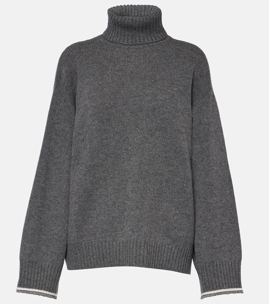 Designed in Italy, the Brunello Cucinelli Wool and silk blend sweater is a neutral luxury Italian accessory offering a clean silhouette for elevated occasions.