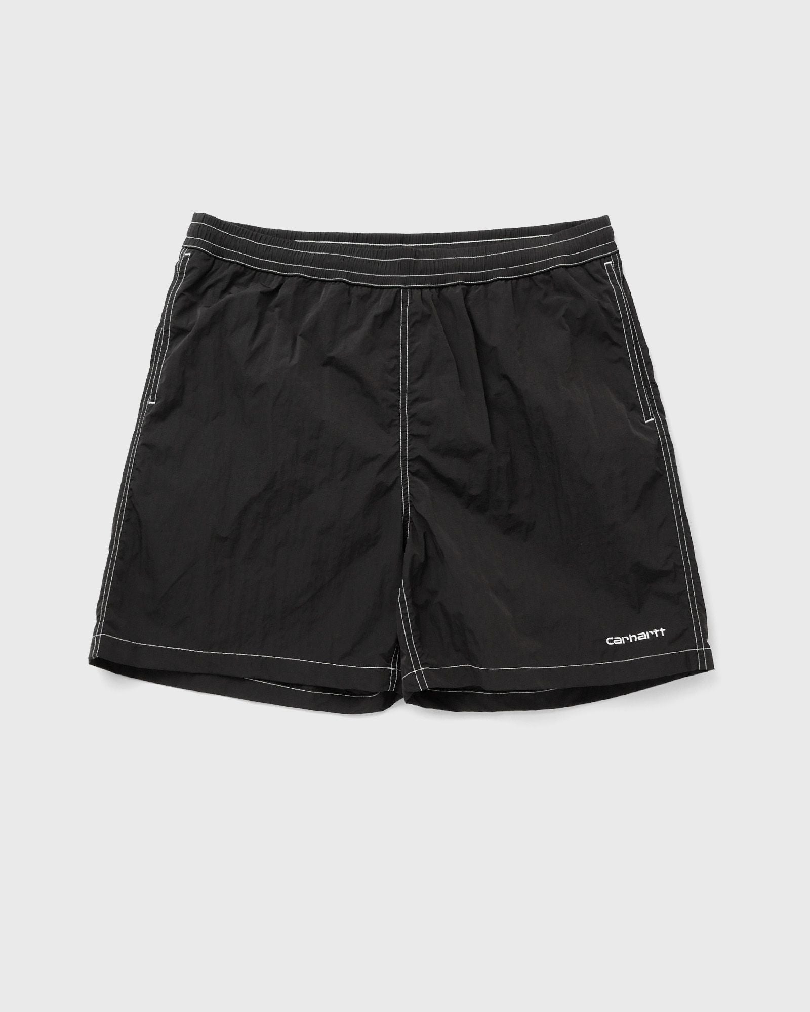 The Canby Swim Trunks from Carhartt WIP are made from a lightweight, water-repellent nylon taffeta and feature subtle contrast stitching. The style has two side pockets and a back pocket with key carabiner. There is a woven square label on the back and an embroidered script logo on the front. - Water-repellent - Contrast stitching - Mesh fabric on the inside - Side pockets - Back pocket with key carabiner - Embroidered script logo - Square label