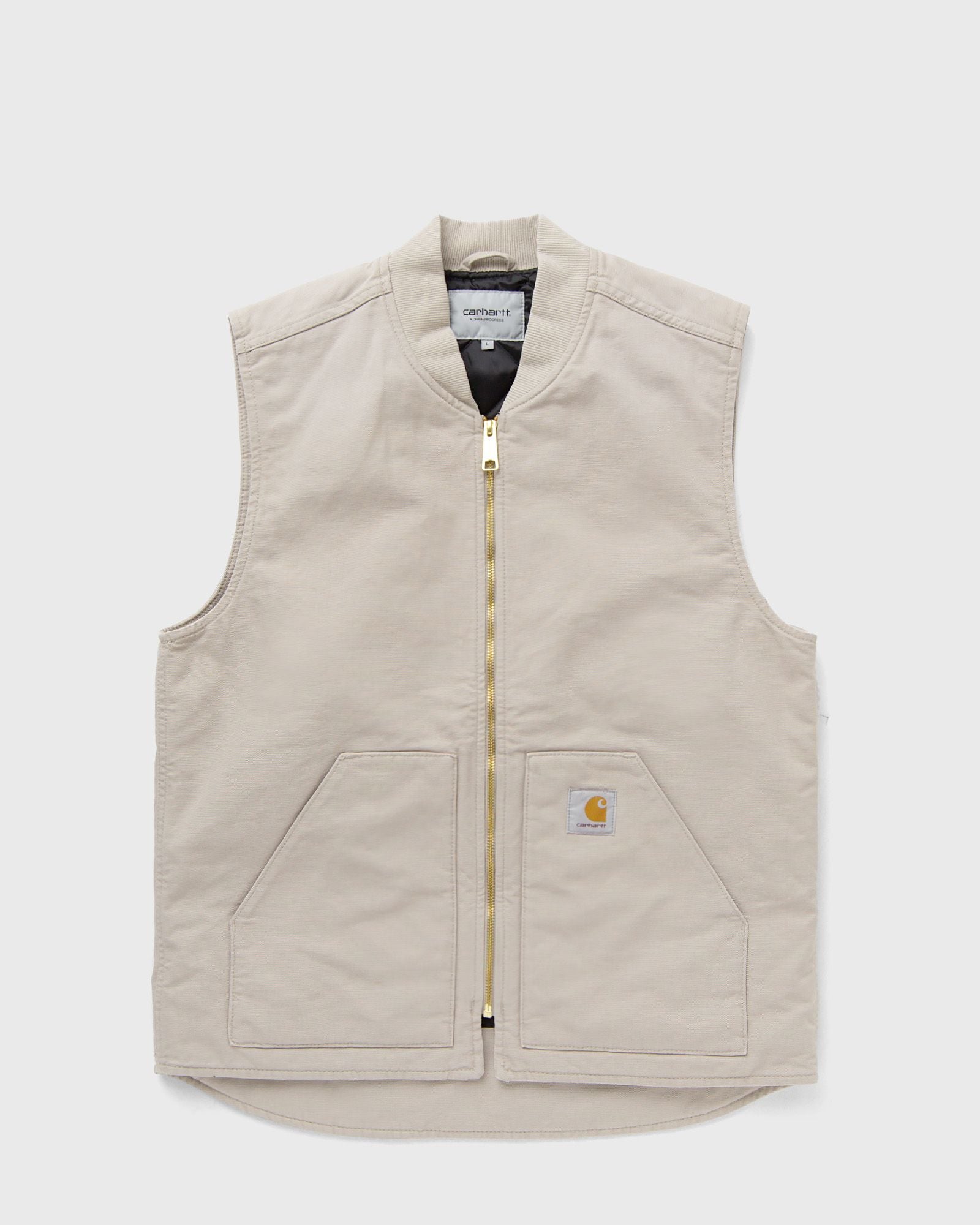 The Classic Vest from Carhartt WIP is made from robust Dearborn cotton canvas with a quilted lining. A stone canvas treatment gives it a softer feel and a slightly washed-out look. The vest features an inner chest pocket and a kangaroo pocket with a woven square label. - Quilted lining - Inner chest pocket - Rib-knit collar - Kangaroo pocket - Zipper - Square label