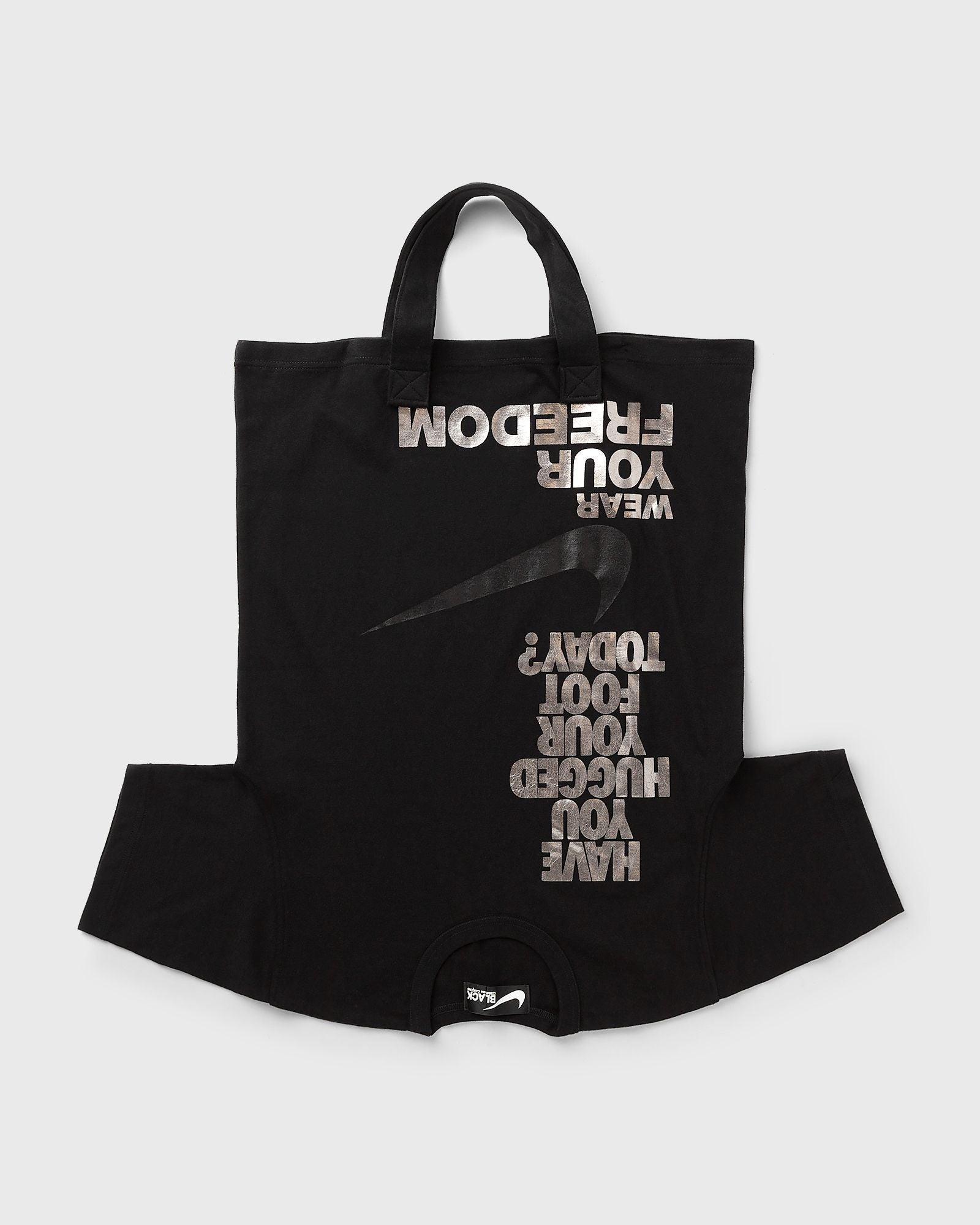 The Comme des Garons Black x Nike Tote Bag reinterprets a classic design in a striking T-shirt shape. - Carrying handles - Main compartment - Silver-colored graphics - Dimensions: 40 cm x 43 cm