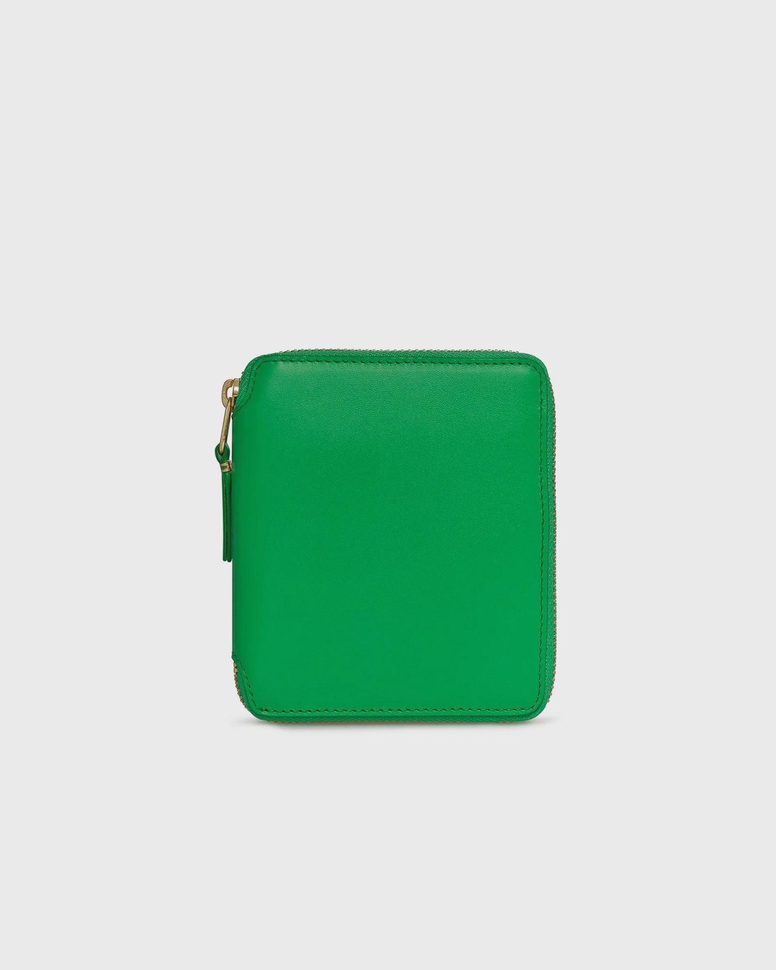 This classic wallet from Comme des Garons is made in Spain from high-quality cowhide and features a gold-colored zipper and gold foil logo. - Zip closure - Four card slots - Coin pocket - Compartment for banknotes - Dimensions: 12.5cm x 10.5cm