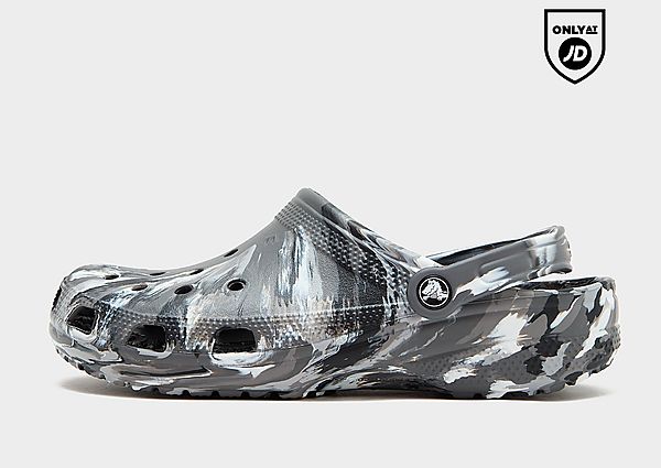 Max comfort and head-turning style combine with these men's Classic Clog sandals from Crocs. In a Grey, Black and White marbled print, these JD-exclusive clogs are made from water-friendly Croslite fabric, with breathable vent ports to the upper and toes. They feature an adjustable pivot heel strap and a contoured footbed to cradle your foot. Finished off with a textured outsole and signature Crocs branding. | Please note: Crocs fit wide. If you have narrow feet, we recommend that you size down. Crocs come with the US size embossed to the sole.