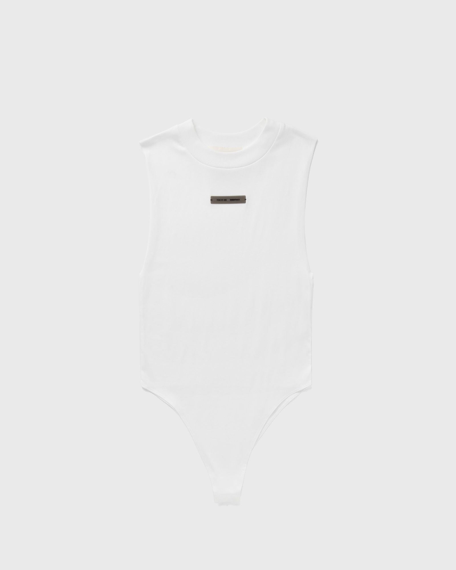 The WMNS BODYSUIT by Fear of God is made from a tri-blend jersey for a softer feel. The piece has a rib-knit crewneck with a design that hugs the body. The minimalist branding includes a clear, rubberized Fear of God Essentials label at the center front and back collar. - Ribbed collar - Slim fit - Rubberized label