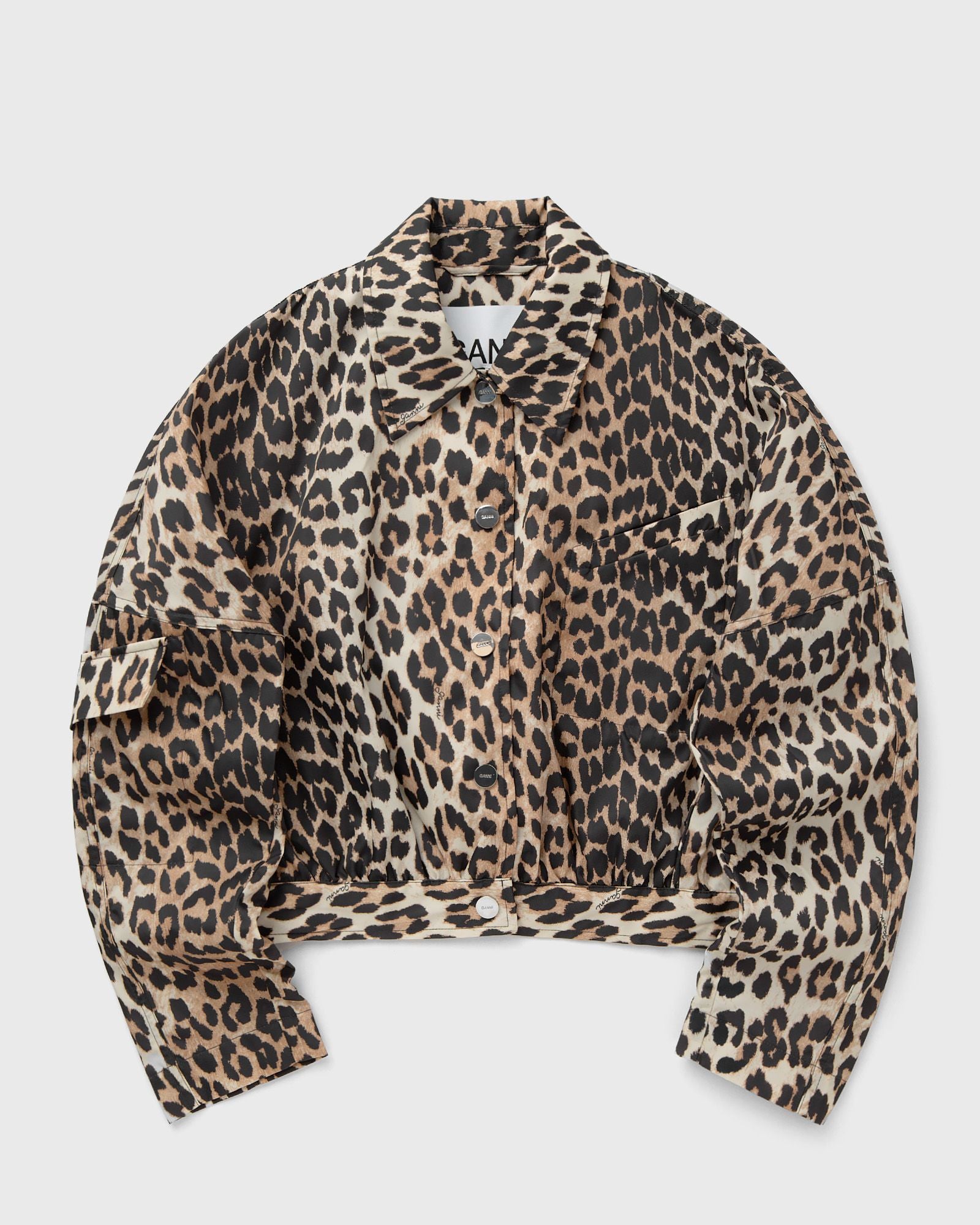 With its classic cut and striking pattern, the Duchesse nylon short jacket from Ganni in a leo look is a versatile piece that no wardrobe should be without. The jacket features a collar and a button fastening on the front for versatile styling options. - Collar - Long sleeves with a pocket - Button placket on the front - Front pocket - Sewn-on Ganni logo patch