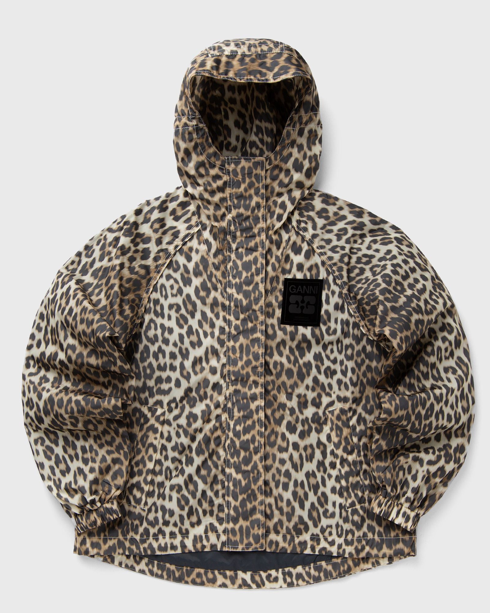 The leopard obsession lives on�this lightweight nylon jacket from Ganni features the iconic leopard print on 100% recycled nylon fabric. The design is rounded off by a contrasting butterfly logo patch that perfectly captures the typical Ganni spirit. - Zipper and snap button closure - Two front pockets - Elastic cuffs