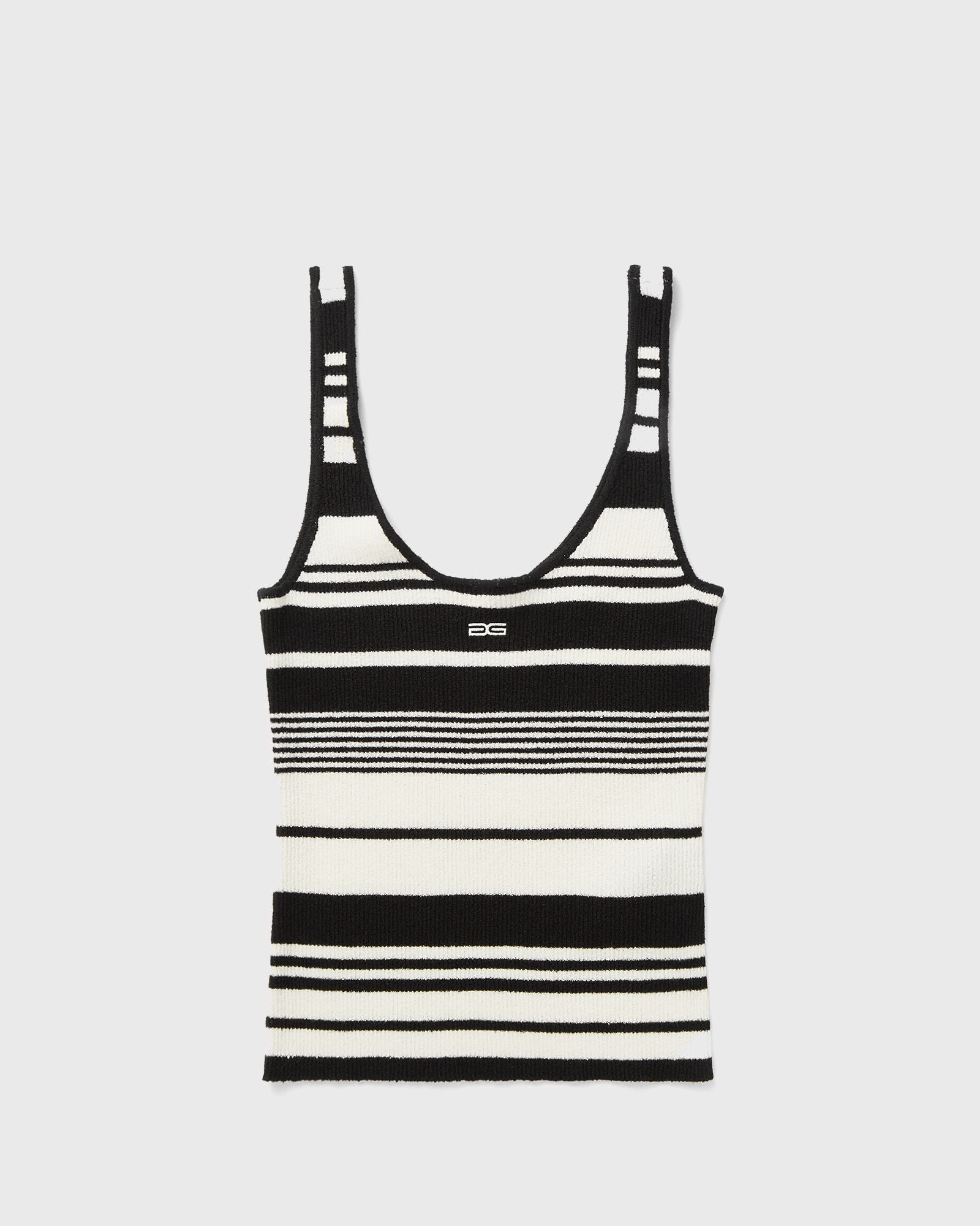 The Gestuz GZStela top impresses with its minimalist chic and casual elegance. Made from soft, lightweight material, it offers comfortable wear and a feminine fit. - Knitted tank top with round neckline - Wide straps - Figure-hugging fit - Logo detail