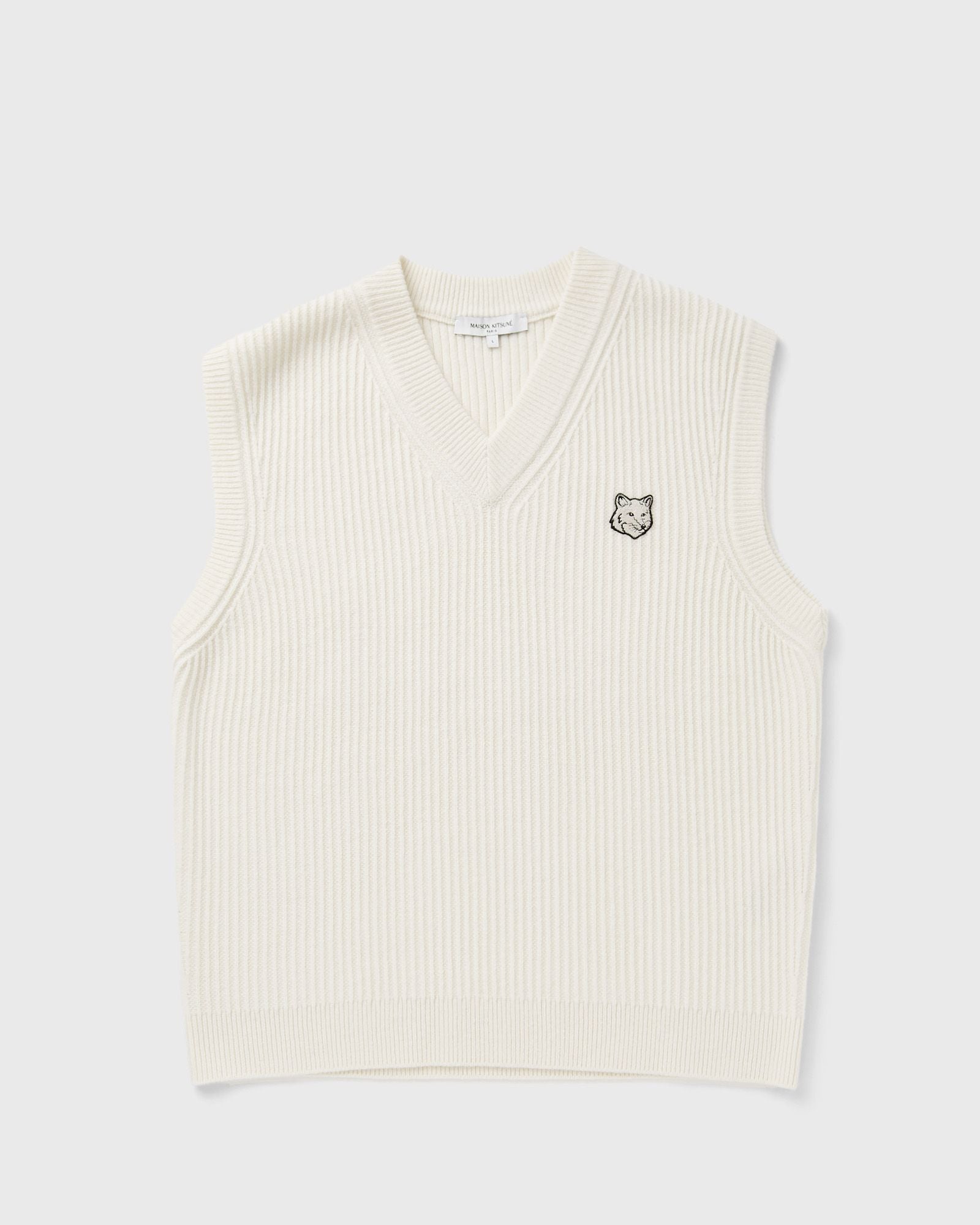 Maison Kitsune FOX HEAD WOOL RIBBED VEST white