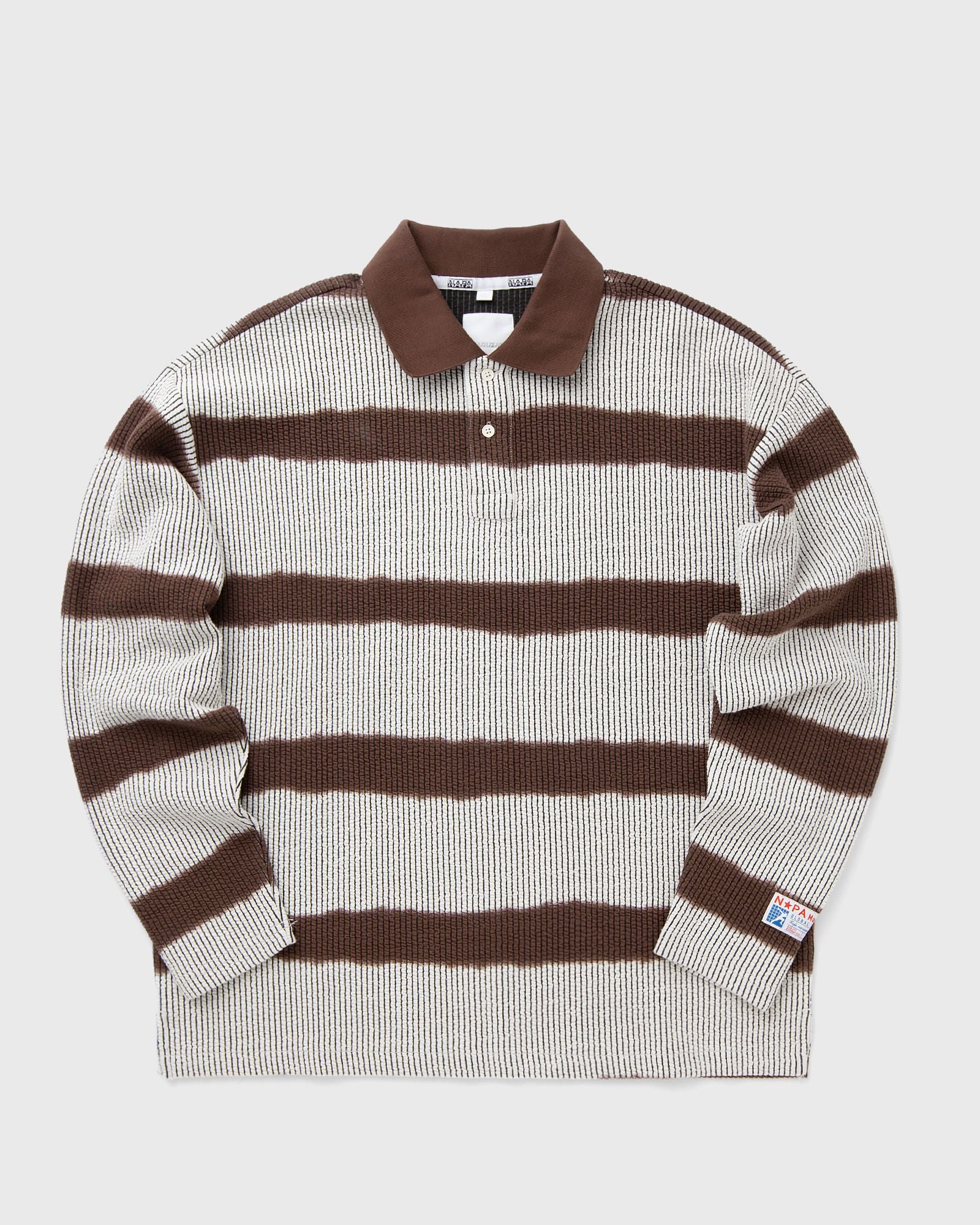 With the Lion long-sleeved polo shirt, Martine Rose reimagines a striking streetwear silhouette from her previous collaboration with Napapijri. The urban look is evident in the classic polo collar, ribbed fabric, and eye-catching striped design�a nod to 90s aesthetics with a modern twist. - Button closure - Embroidered eyelets - Patch