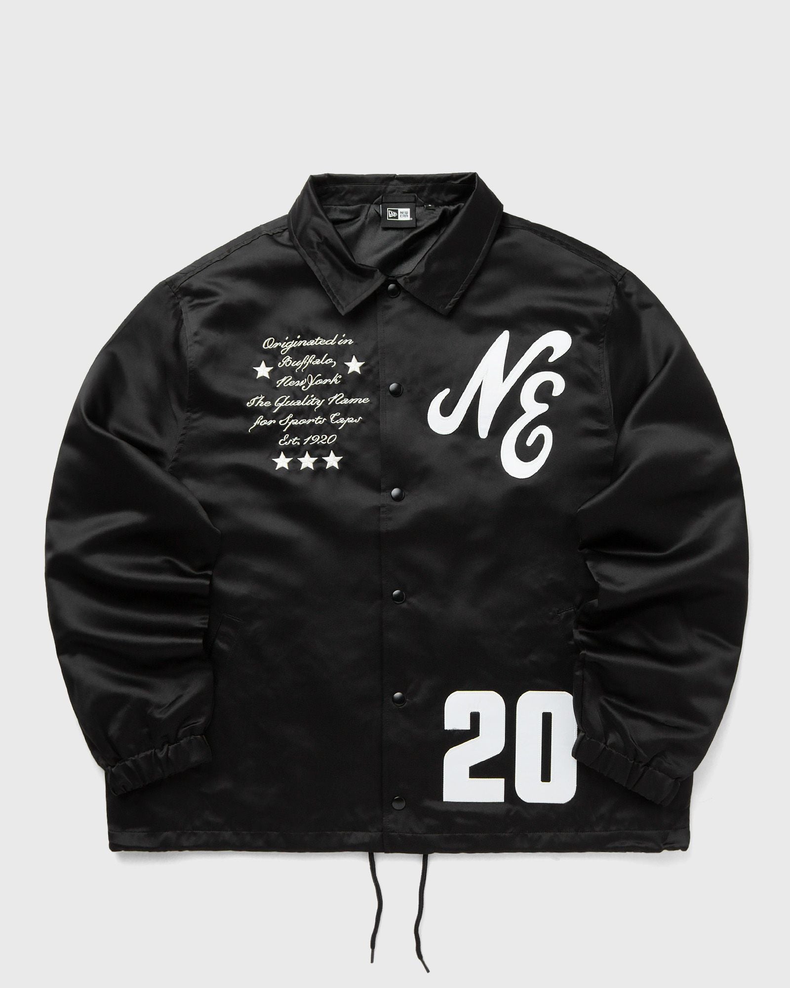 The New Era Coach Jacket combines sporty functionality with a striking look. Eye-catching details such as the Heritage Connect logo, the Origin Story lettering, and the large 20 on the front add clear accents. The classic collar, snap closure, and drawstring hem ensure the typical Coach jacket style. With front and inside pockets and an embroidered New Era flag on the sleeve, the jacket is as practical as it is expressive. - New Era Heritage Connect logo on the left chest - New Era Origin Story lettering on the right chest - Number 20 on the lower left front - Embroidered New Era flag on the left sleeve - Collar - Front pockets on the left and right - Inside pocket on the left chest - Snap closure at the front - Drawstring closure at the hem