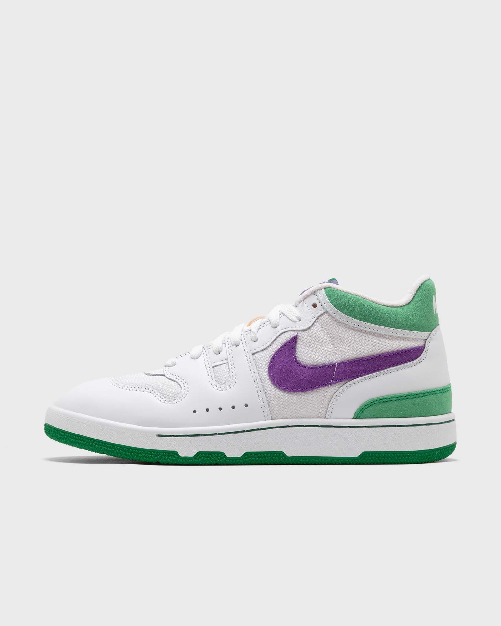 This version of the iconic Nike Attack comes in a mix of crisp leather and textile that serves as a canvas for pops of court green and hyper grape. A padded collar, a checkered tongue label and the typical 80s style round off the design.