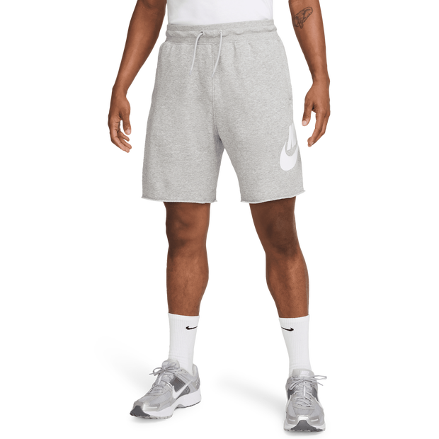 Built with the comfort of Nike Club, these French terry Alumni shorts have a casual cut that's relaxed through the seat and thighs. Benefits: This midweight French terry fabric (with unbrushed loops on the inside) gives structure, breathability and softness—so it's just as ready for the gym as it is for the sofa. A hidden press-stud closure on the back pockets helps keep your small items secure. Product details: Pockets. An elastic waistband with a round external drawcord. 58% cotton/23% rayon/19% polyester. Front pocket: 100% cotton; waistband: 49% rayon/47% cotton/4% elastane. Machine wash. Imported