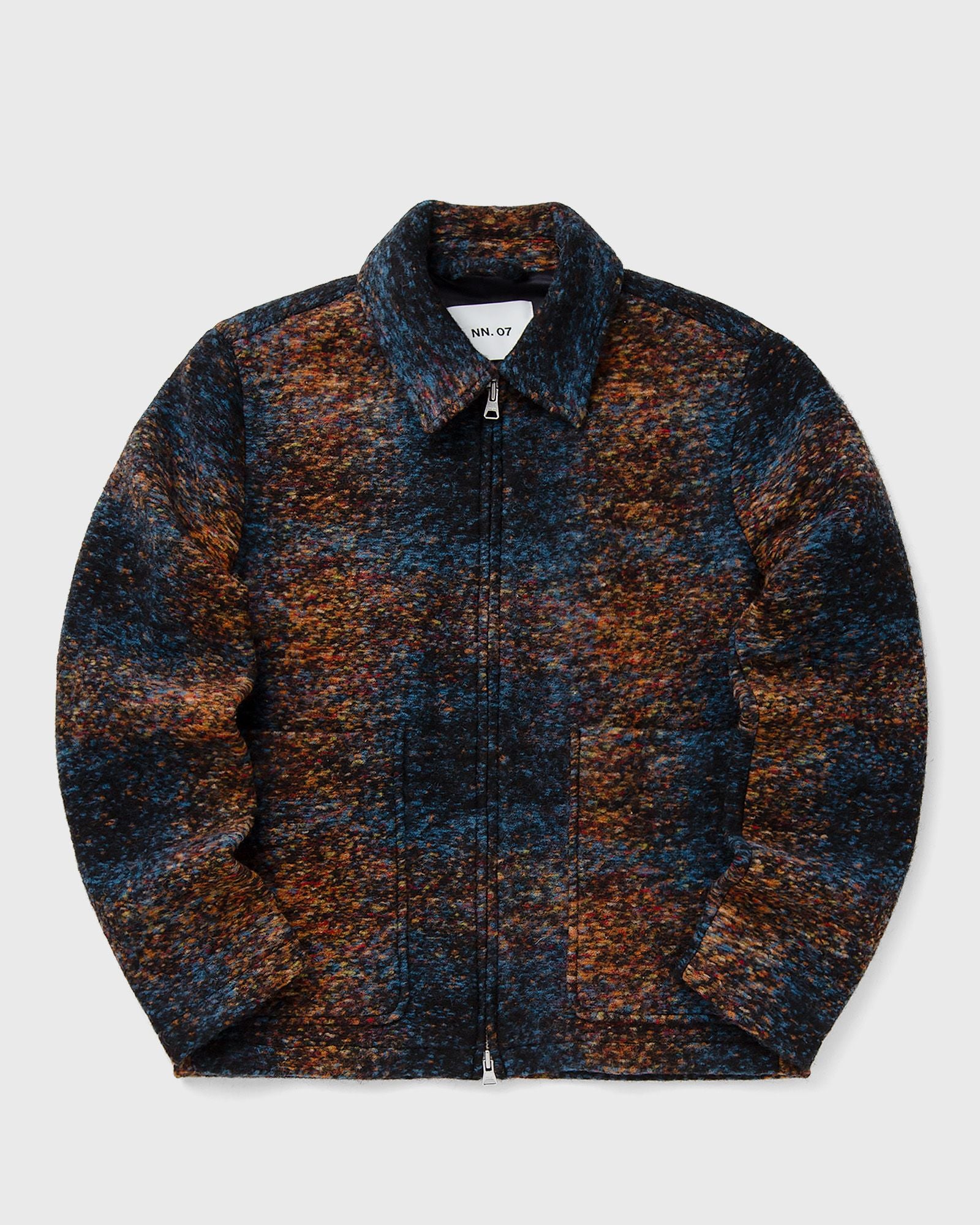 The Gael 8267 jacket by NN.07 is a hip-length jacket made from a heavy wool blend with a jacquard weave. It features two large front pockets, a distinctive two-way zipper, and concealed inside pockets. - Hip-length jacket made from a heavy wool blend with a jacquard weave - Two large front pockets - Two-way zipper - Concealed inside pockets