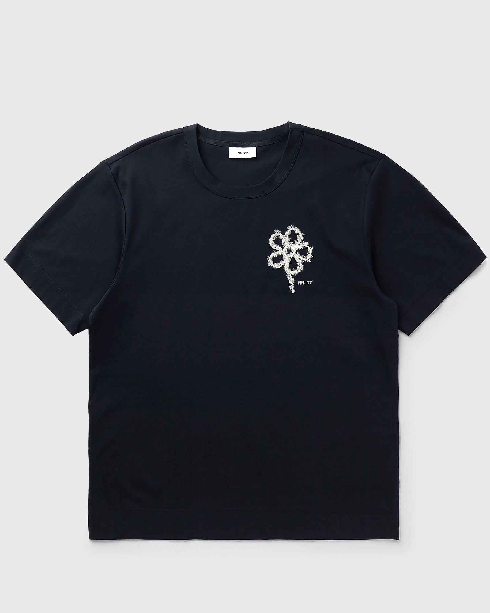 The Pedro 3525 shirt from NN07 combines minimalist style with high-quality workmanship. Made from mercerized organic cotton, it has a soft feel and a subtle sheen. The straight cut and wide hem create a modern silhouette. A small, embroidered floral motif on the chest adds a subtle accent. - Ribbed round neckline - Short sleeves - Embroidery on the chest