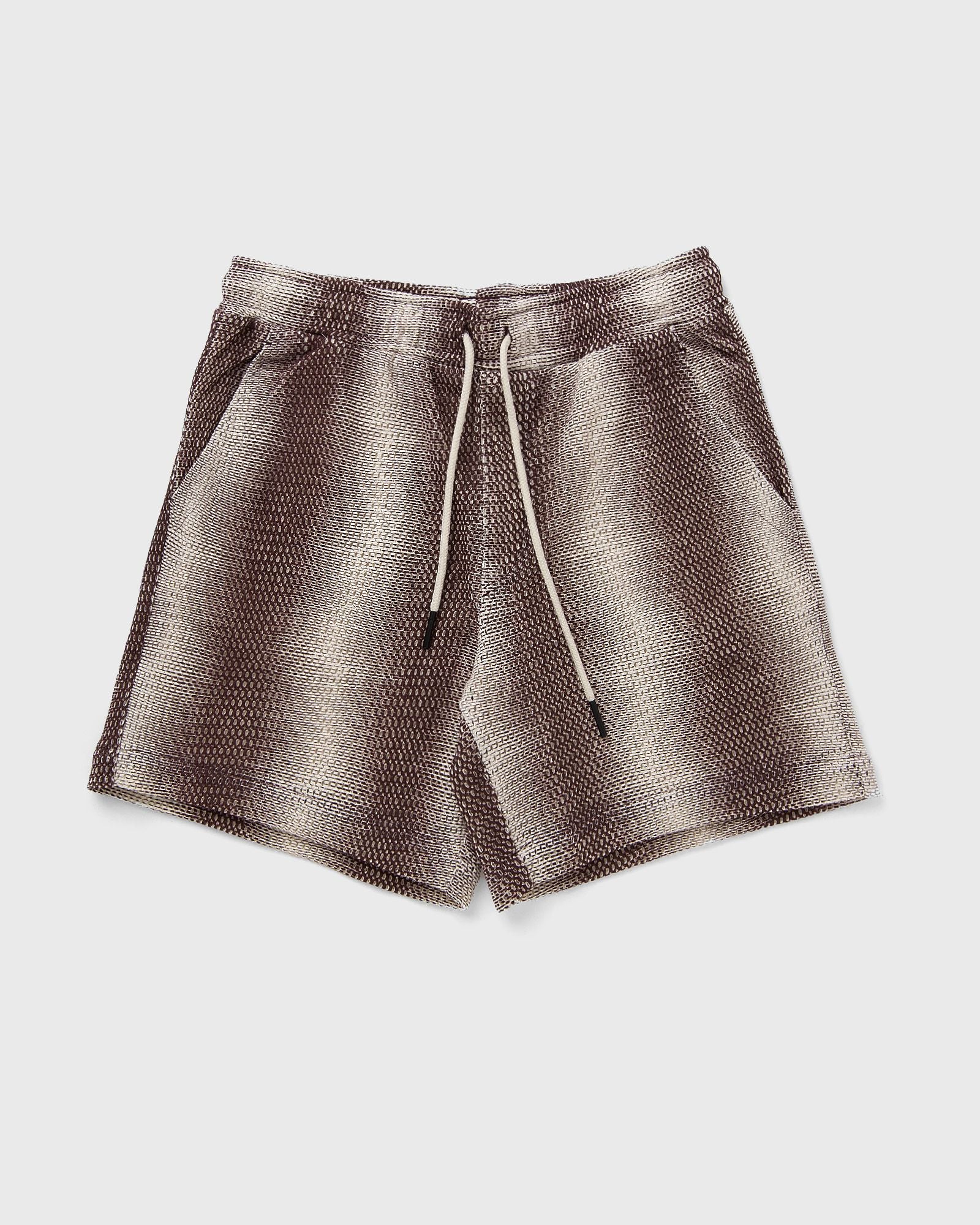 The OAS Merlot Echo Net Shorts are made from an airy cotton bobinet fabric with a print of warm stripes with a color gradient. They are perfect for long summer days, with multiple pockets, a comfortable drawstring waistband and inner shorts made from soft and breathable viscose. - Medium-weight woven bobbinet - Breathable - Elastic waistband - Two slanted side pockets and one back pocket - Inner shorts made from viscose