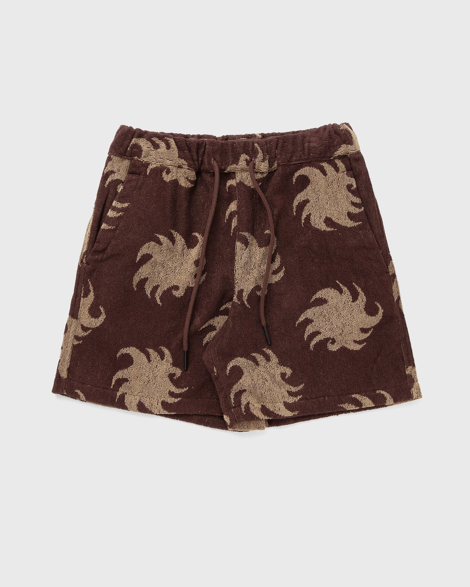 The OAS Mocha Ember Terry Shorts are made from heavyweight cotton terry in a jacquard design with a pattern of twisting sunbeams and are wonderfully soft and breathable. The loose-fitting shorts have several pockets and a comfortable drawstring waistband. - Heavyweight, jacquard-woven terry fabric - Breathable - Elasticated waistband - Two side pockets and one back pocket