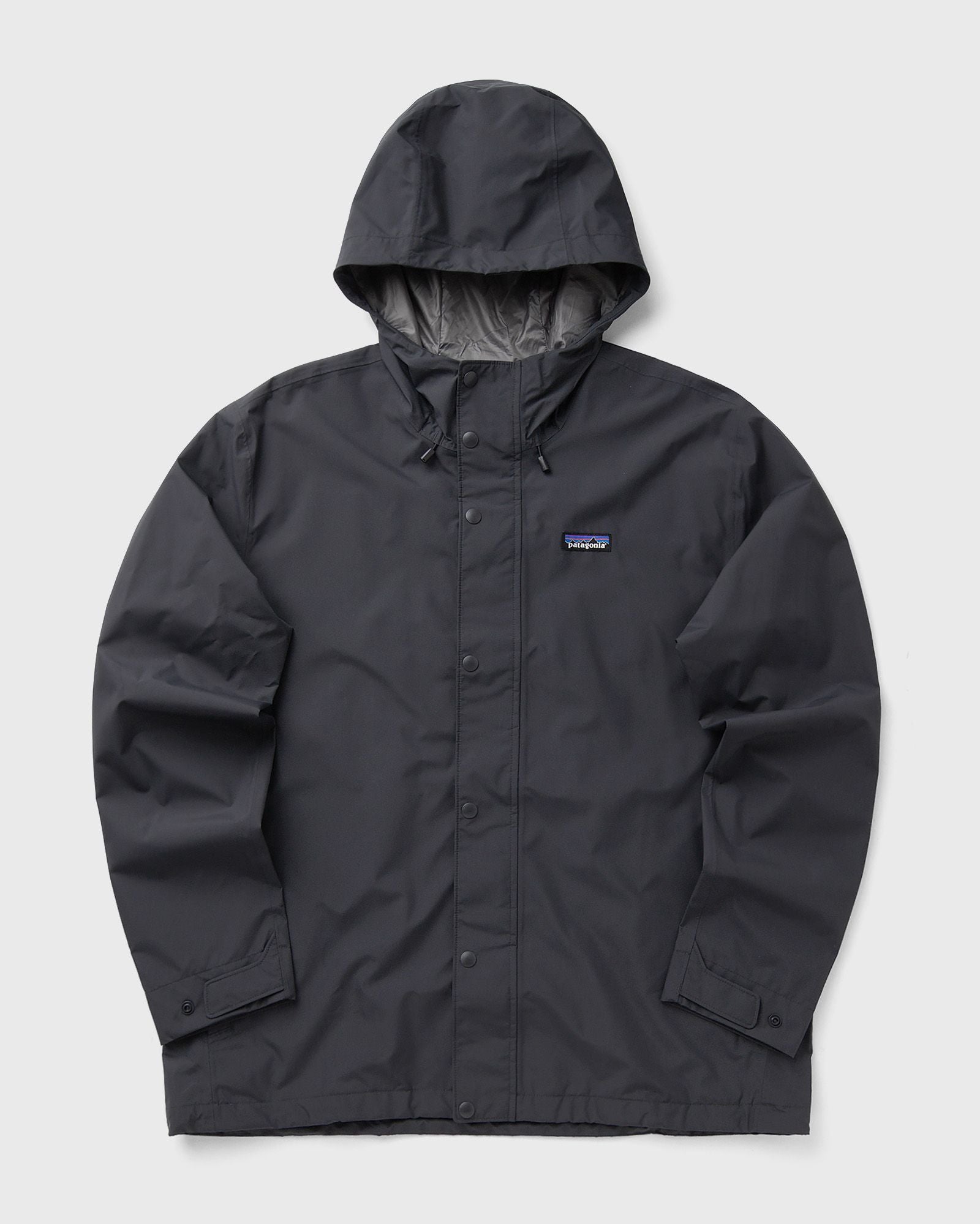 Whether it's wind or rain, the Jackson Glacier Shell from Patagonia can handle it. This sporty rain jacket is made from 100% recycled polyester and offers reliable weather protection with a simple, versatile design. - The outer fabric is a waterproof/breathable and windproof H2No Performance Standard 2-layer laminate with a 100% recycled polyester shell and a 100% recycled nylon ripstop lining. - The full-length front zipper has a snap-button storm flap for optimal protection against cold and wind. - A sewn-in, dual-adjustable hood provides additional protection against cold, wet, and windy conditions. - Two welted front zipper pockets and an interior zipper chest pocket provide secure storage space. - Adjustable cuffs with snap tabs are comfortable against the skin and ensure that warmth stays in and cold stays out - The drawcord hem traps heat and keeps the cold out