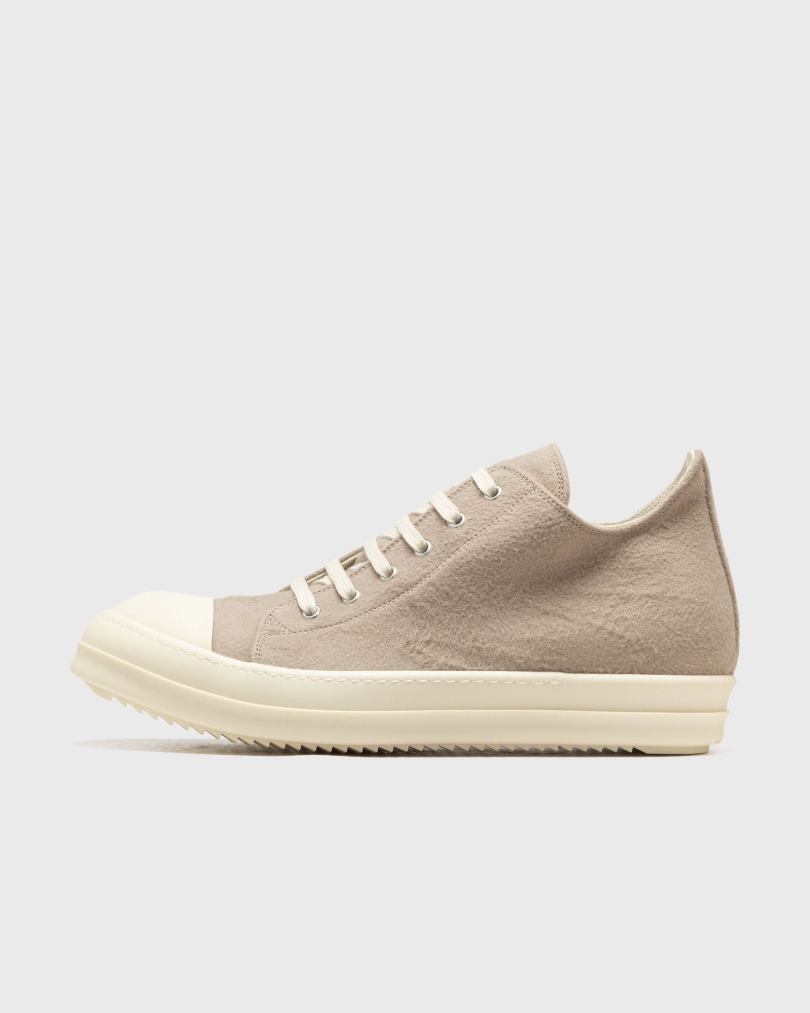 These Rick Owens low-top sneakers combine minimalist design with sustainable manufacturing: the upper is made from GOTS-certified organic cotton with a soft, brushed finish. The subtle color scheme is complemented by the contrasting rubber sole with a distinctive shark tooth tread. - Medium-weight brushed cotton fabric - Lace-up closure - Contrasting rubber sole with shark tooth tread