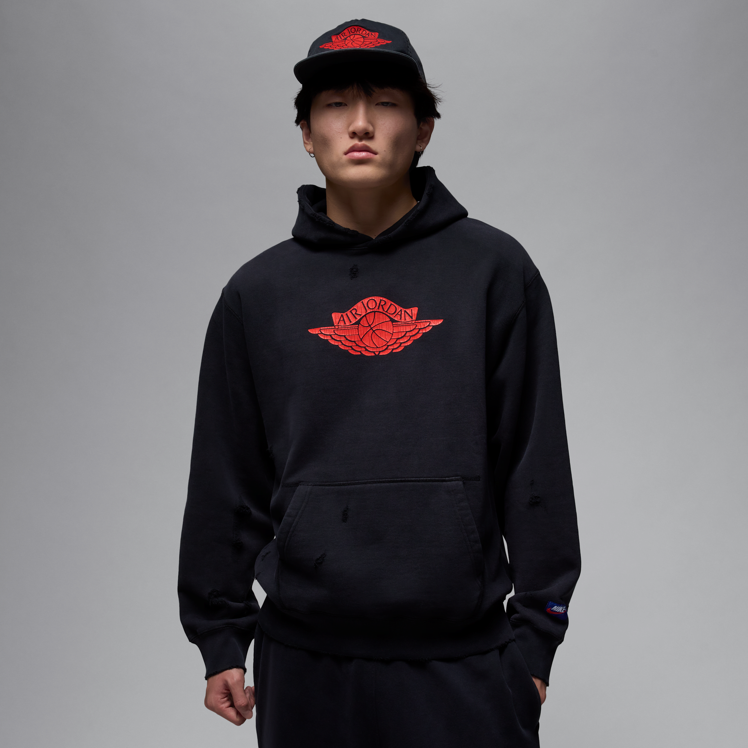 Celebra las diferencias que nos dan autenticidad con la colección Rare Air de Jordan. Hecha con French Terry transpirable de alta densidad, esta sudadera con gorro cómoda combina una decoloración en toda la prenda con un gráfico craquelado para tener un look perfectamente desgastado. [] [] ["Datos del producto: Cuerpo/forro del gorro: 100% algodón. Bolsillo en la parte delantera. Puños y dobladillo de tela de canalé. Lavar a máquina. Producto importado"] Style: IB3003; Color: Negro; Size: L; Age Group: Adult | Jordan Rare Air