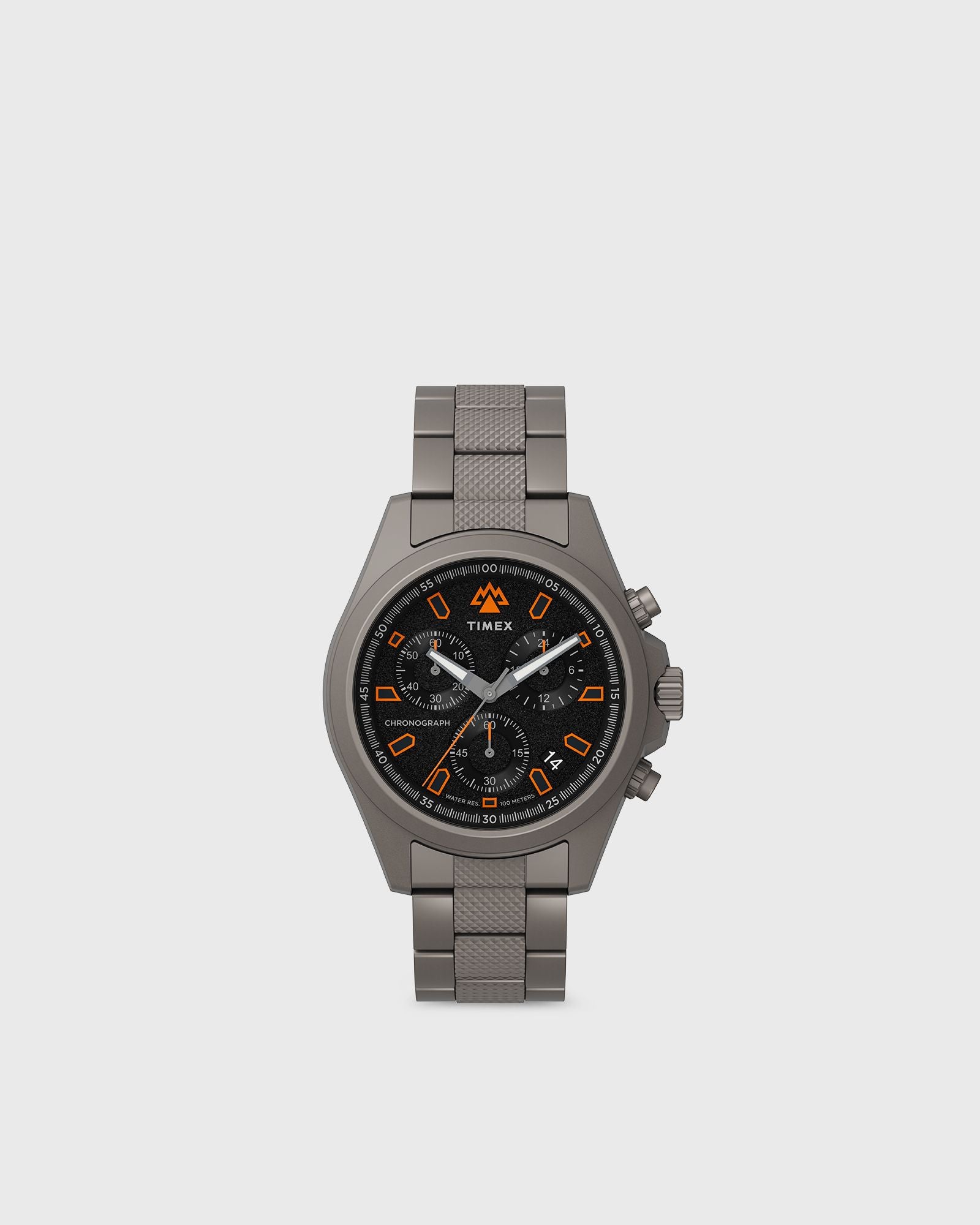 The Timex Expedition North Field Chronograph has a robust yet refined construction and is modeled after classic military watches of the past with its clean design. The watch features a robust 43mm stainless steel case with gunmetal PVD coating, a screw-down crown and screw-down case back offering 100m water resistance, a sapphire crystal with anti-reflective coating and luminous hands and indexes that are clearly visible even on the darkest nights. A stainless steel bracelet ensures an everyday style that is also robust enough for outdoor adventures. - Case diameter: 43 mm - Case material: stainless steel - Cover: sapphire crystal - Bracelet material: stainless steel - Water resistance: 100 meters