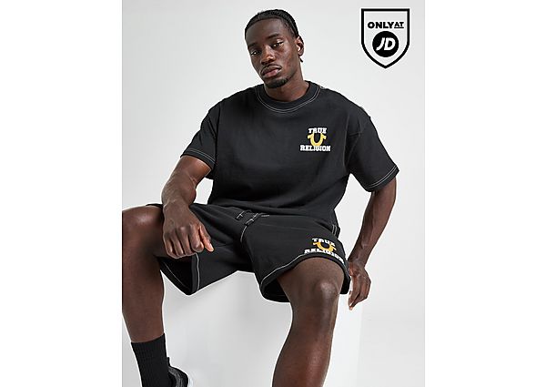 Add a premium hit to your tee collection with this men's World Tour Big Logo T-Shirt from True Religion. In a Black colourway, this loose-fit tee is cut from soft, durable cotton for lasting comfort. It has a thick ribbed crew collar and short sleeves with dropped shoulders for a laidback vibe. Finished with contrasting double stitching and a bold True Religion back graphic. Signed off with the iconic logo to the chest. Machine washable. | Our model is 6'1" with a 36.5" chest and wears a size M.