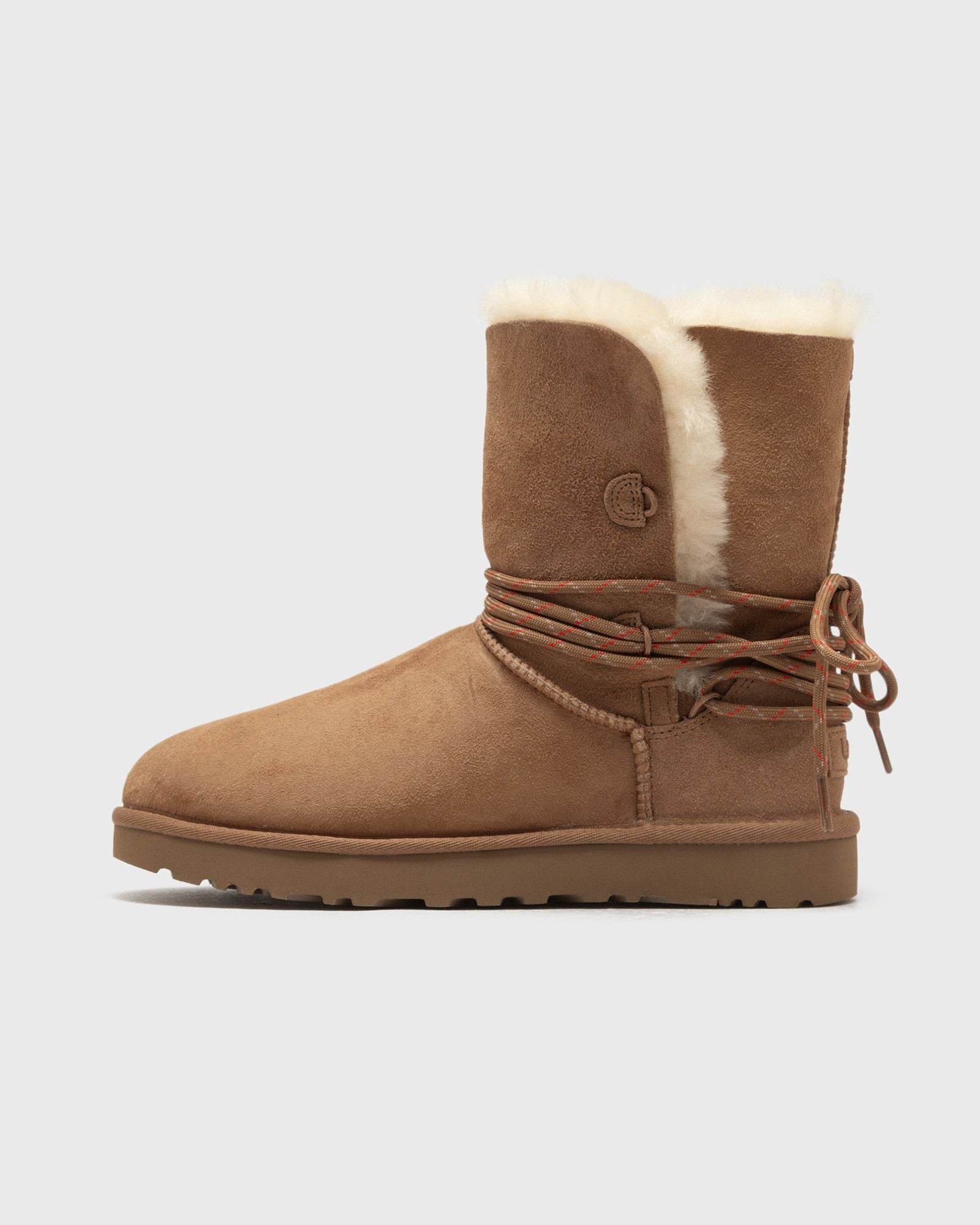 The Bailey Tie is a natural evolution of the UGG Classic Boot�it's almost unbelievable that it's only just arrived. With its unique lacing design at the back, you can style it in a variety of ways: either with the overlapping, speckled laces for a striking look, or with the additional satin ribbons for a softer touch. The plush upper and high-quality lambskin can be pulled up or folded down to reveal the fluffy interior. Either way, the Bailey Tie impresses with its unmistakable UGG comfort. - Protection: Subsequent treatment - Selective water-repellent treatment - Upper made from 17 mm thick natural lambskin - Satin laces, speckled laces - 17 mm thick lambskin insole - EVA outsole made from sugar cane - Textile binding made from 100% recycled polyester fibers - Hot-stamped UGG logo - Includes additional laces