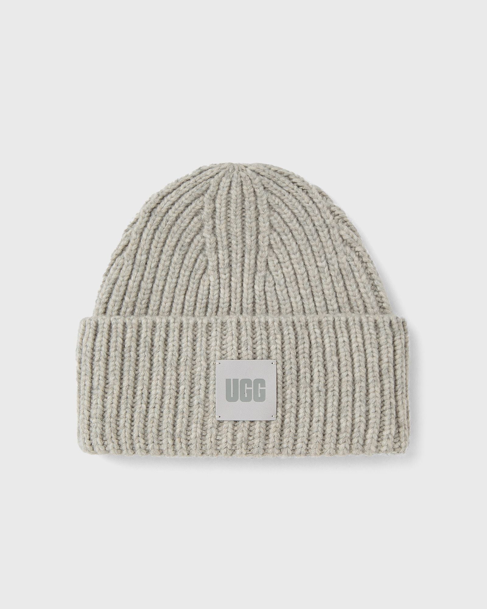 The UGG beanie in chunky rib knit is knitted from cozy blended fibers and features a leather logo patch. - Rib knit beanie - Leather label with UGG graphic lettering