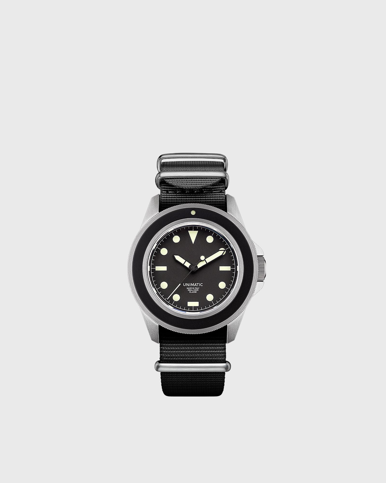 The UC1 is part of Unimatic's Classic Series, which features an easy-to-read dial in matte black with Super-LumiNova C3 in light green for the best possible performance in all conditions. The permanent series is a functional evolution of the Unimatic references and is considered the archetype of the ideal performance timepiece. It is distinguished by the new CLASSIC lettering on the dial as well as on the screw-down case back, engraved with the 'Rosa dei Venti' diagram. - Type: Unimatic Classic Diver watch - Origin: Made in Italy - Water resistance: 300m = 1000ft = 30atm - Size: Diameter 40mm case with 41.5mm bezel - Case thickness: 13.6mm - Strap lugs/strap size: Punched lugs / 22mm - Case material: 316 stainless steel - Caliber type: Automatic caliber Seiko NH35A 21600bph - Power reserve: 41h