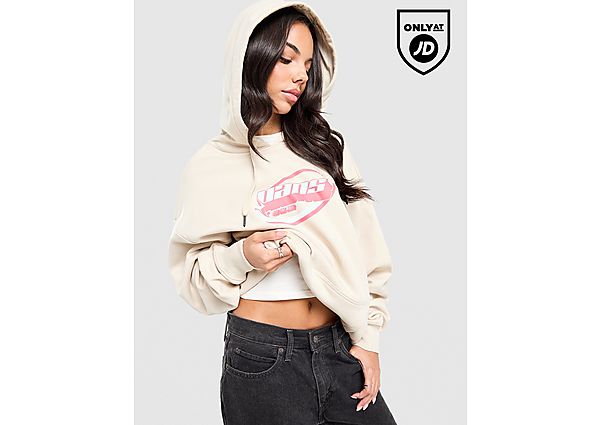 Refresh your layer game. This women's Y2K Checkerboard Hoodie from Vans is cut from soft fleece fabric. It has a pullover, adjustable hood for coverage. Ribbed trims hold the shape. A kangaroo pouch offers easy storage. JD-exclusive, it lands in beige with graphic branding to the chest. Machine washable | Our model is 5'7" and wears a size S.