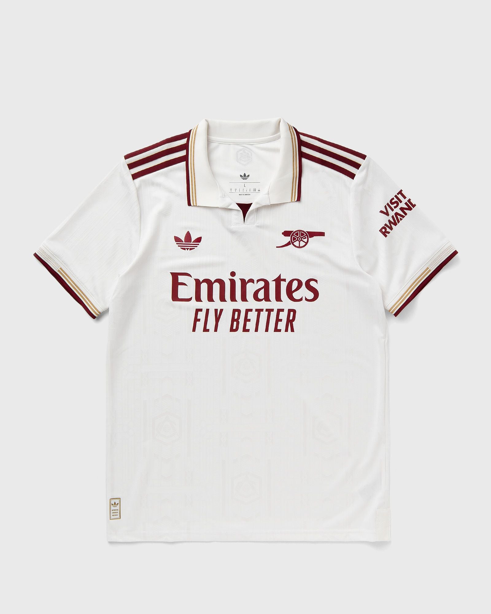 Twenty years after Arsenal's last season at Highbury, this Authentic soccer jersey from adidas honors the Art Deco elegance of the East Stand. From the off-white tone to the elaborate all-over graphic to the vintage badge on the back of the neck�fans of all ages will love the rich detail. At the same time, the performance-oriented construction�just like for the players on the pitch � ensures optimal comfort and freedom of movement during the game. - Slim fit - Polo collar - Thermal print Arsenal FC crest