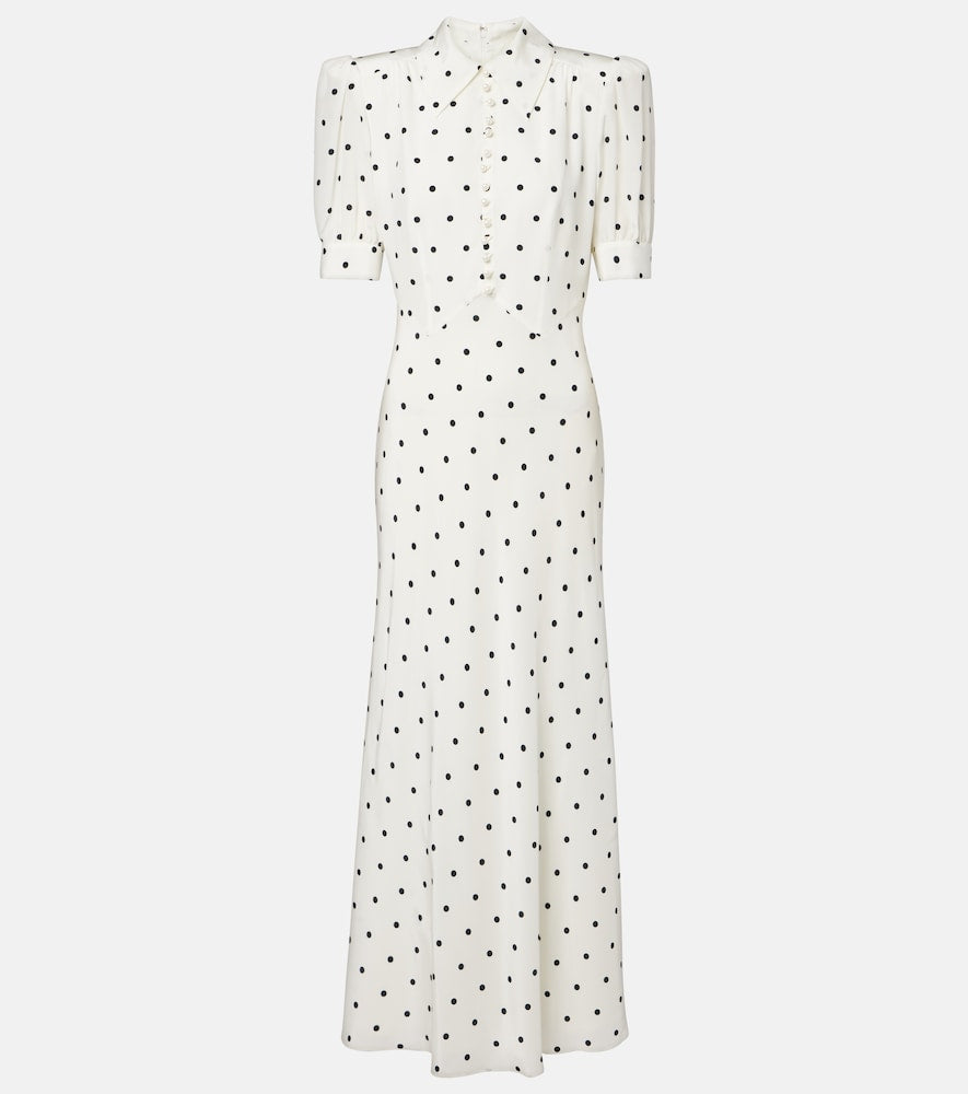 The Alessandra Rich Polka-dot silk midi dress lends itself to occasion dressing, offering an elevated way to update everyday or occasion dressing.